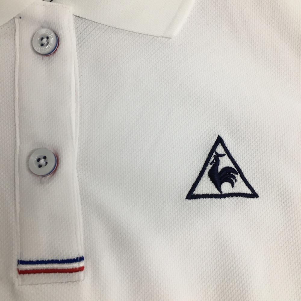 ルコックゴルフ 半袖ポロシャツ 白×ネイビー 一部トリコロール レディース L ゴルフウェア le coq sportif