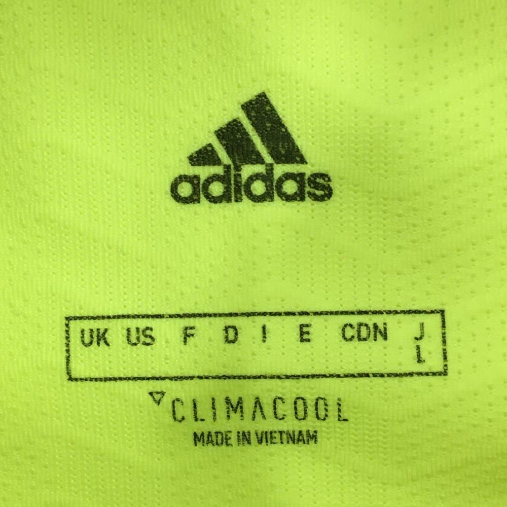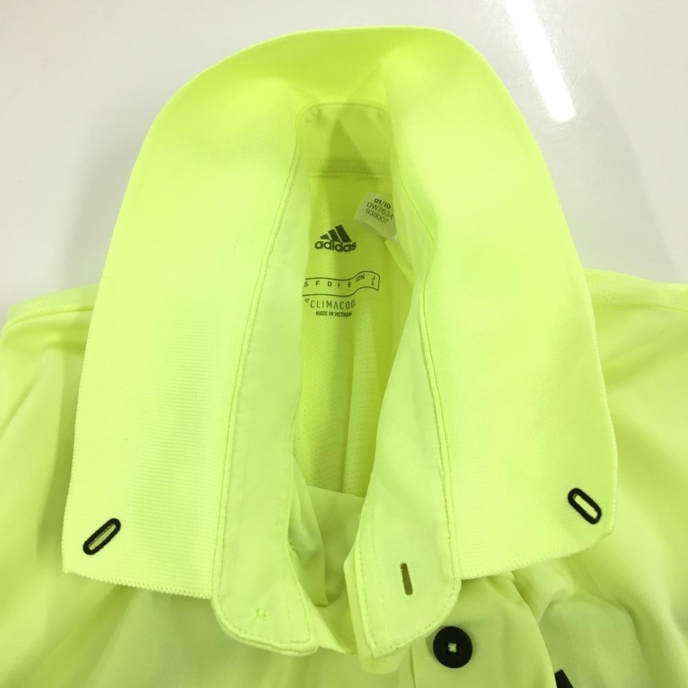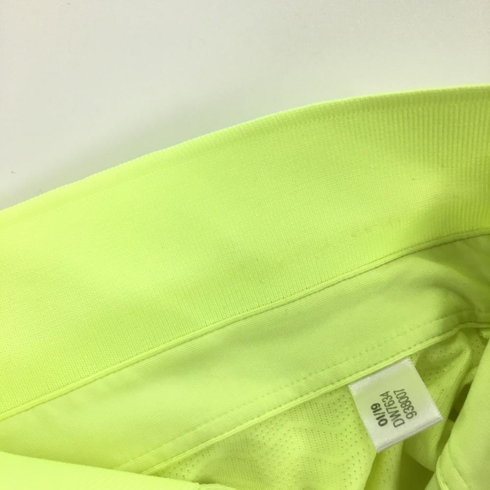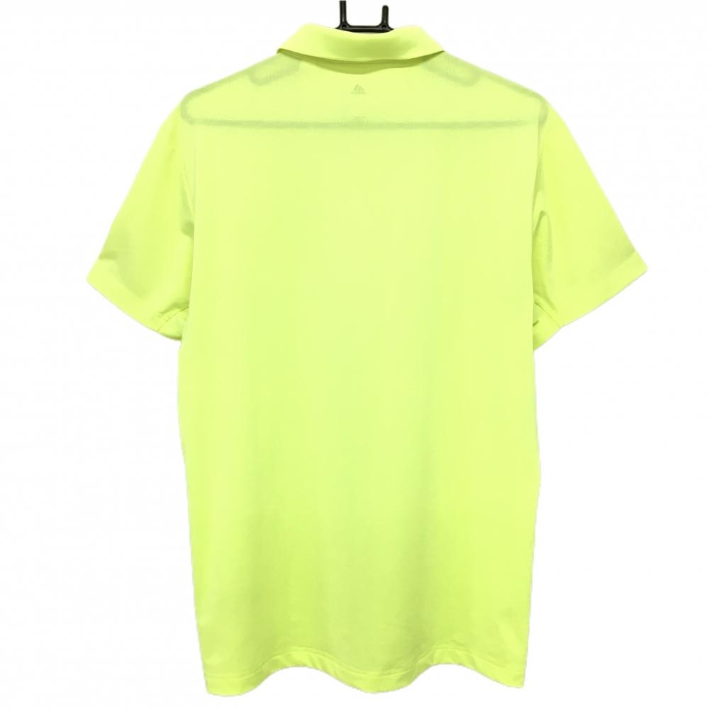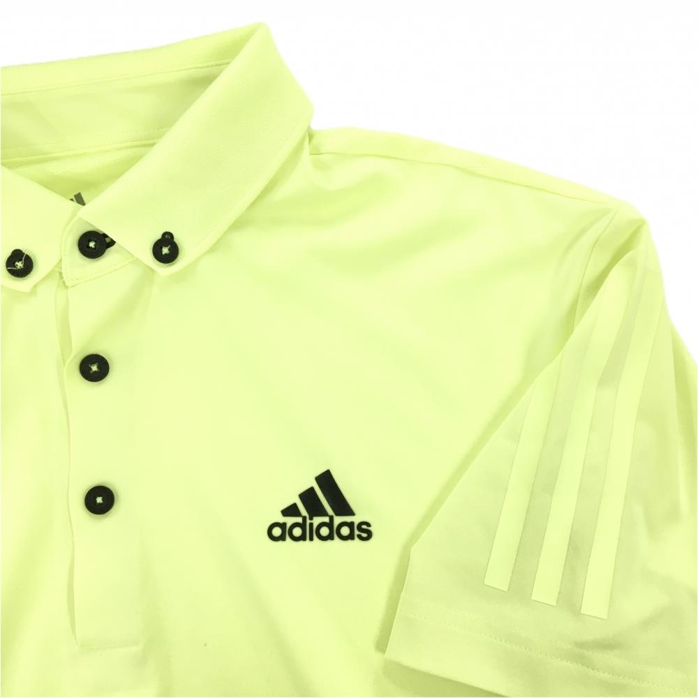【美品】アディダス 半袖ポロシャツ 蛍光イエロー ボタンダウン 袖3ライン メンズ L ゴルフウェア adidas
