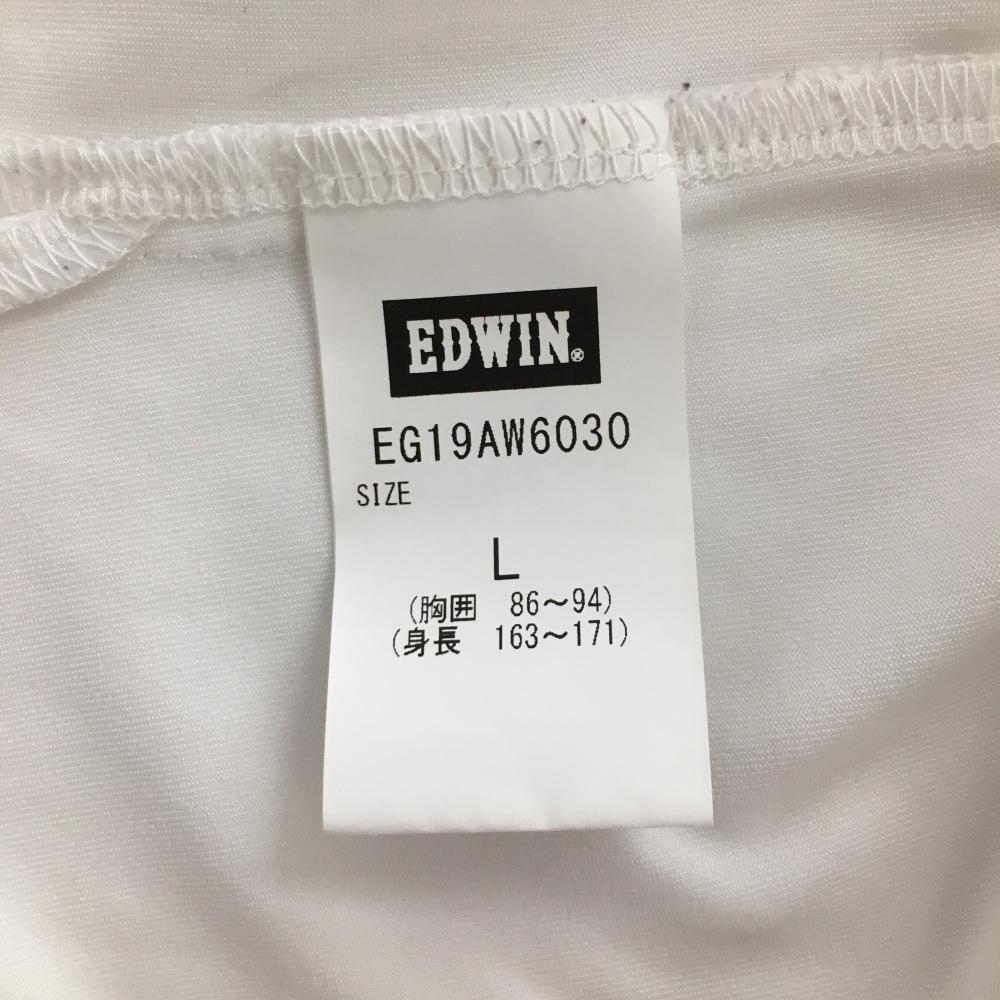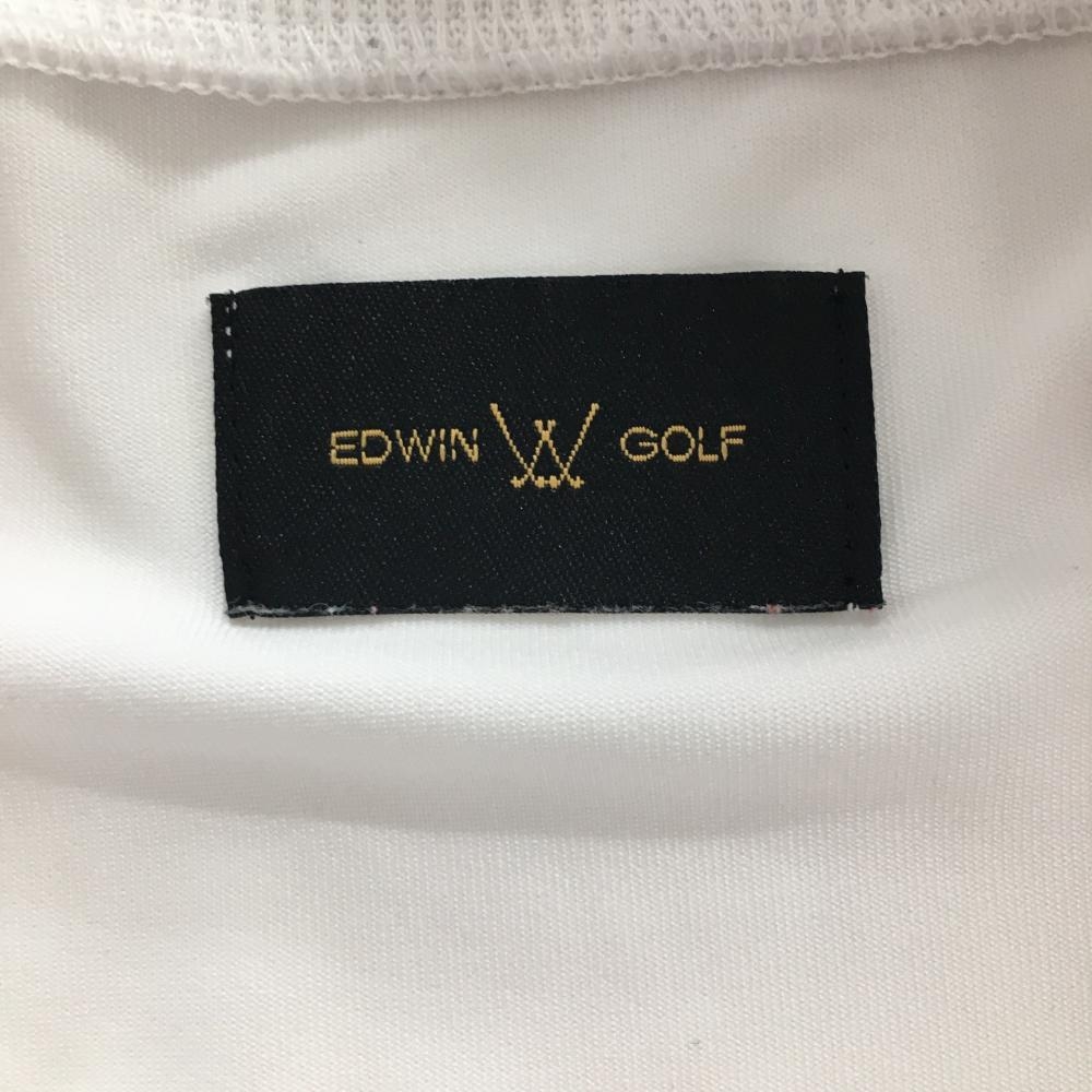 【美品】エドウィンゴルフ 長袖ハイネックシャツ 白 インナーシャツ プリント レディース L ゴルフウェア EDWIN GOLF