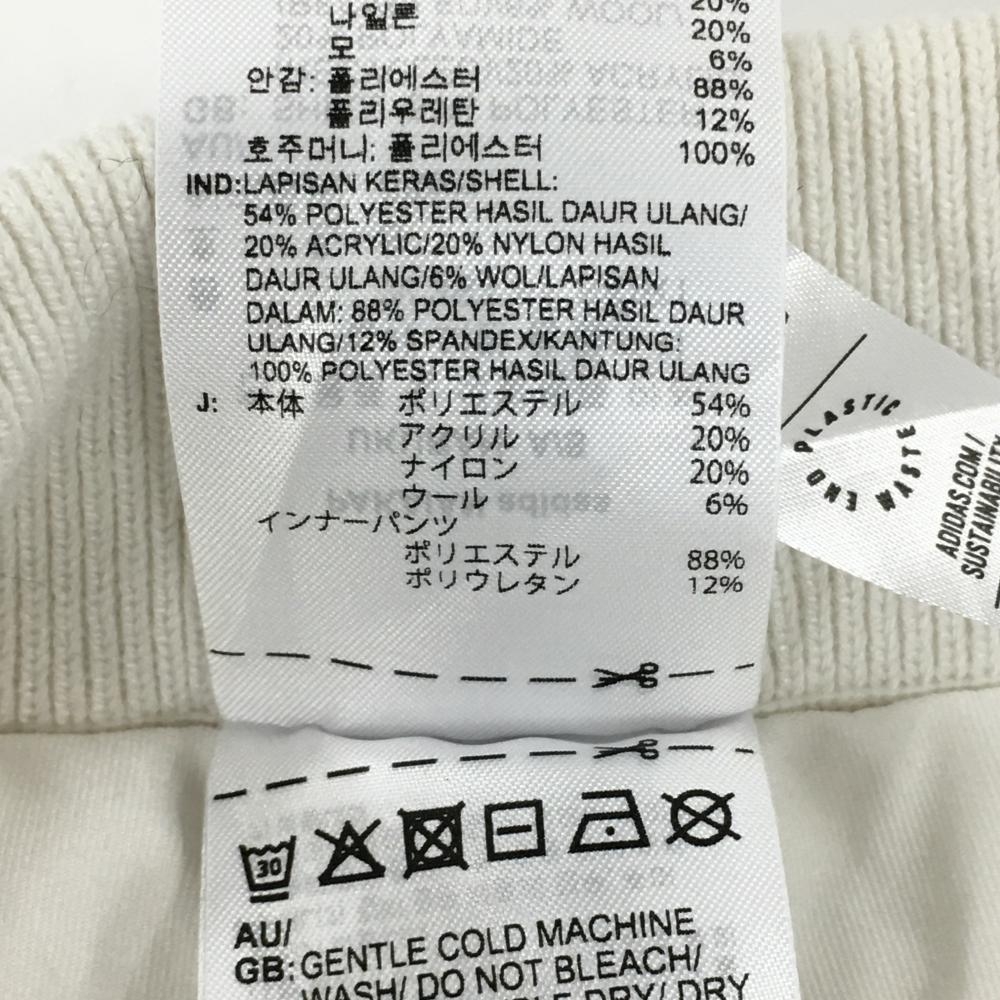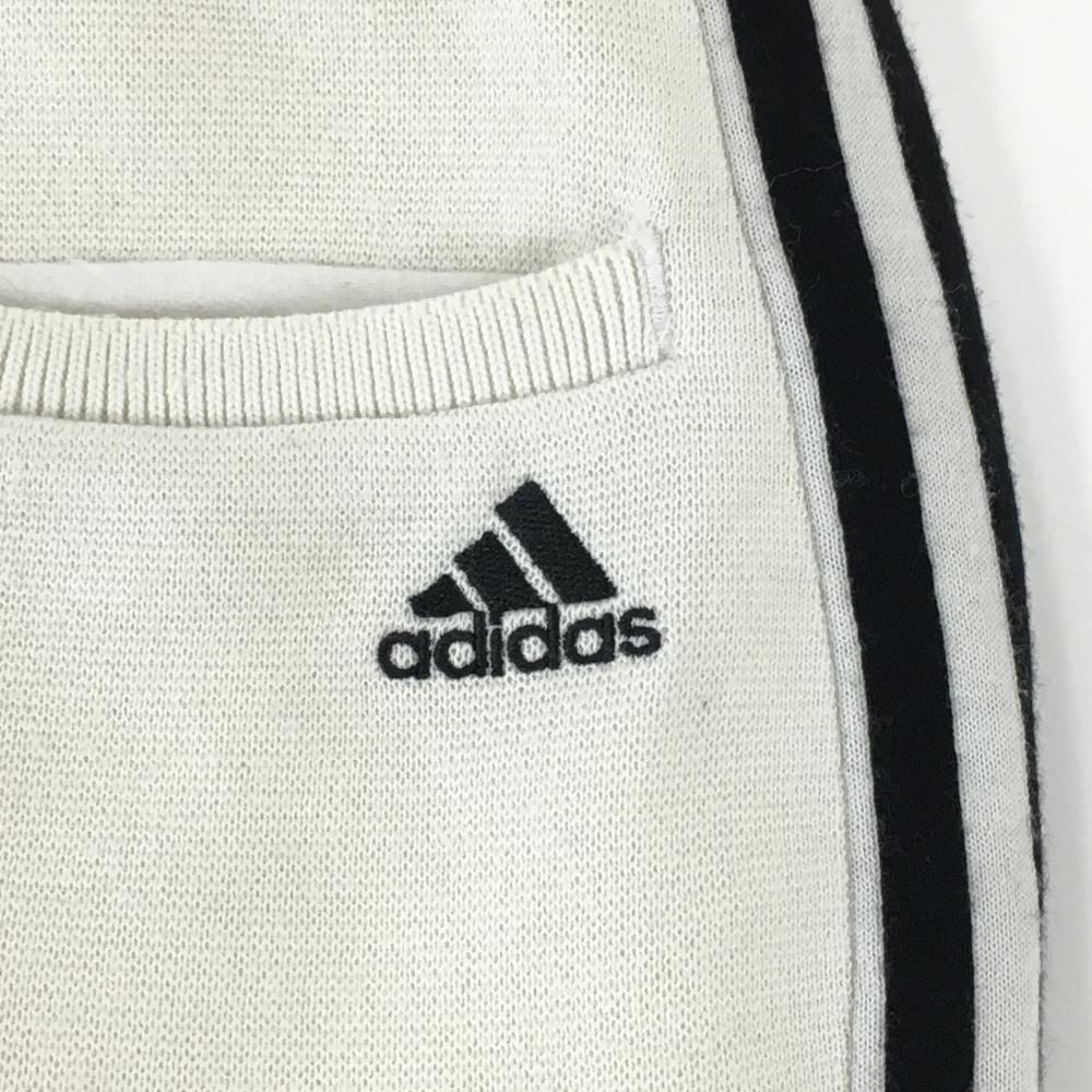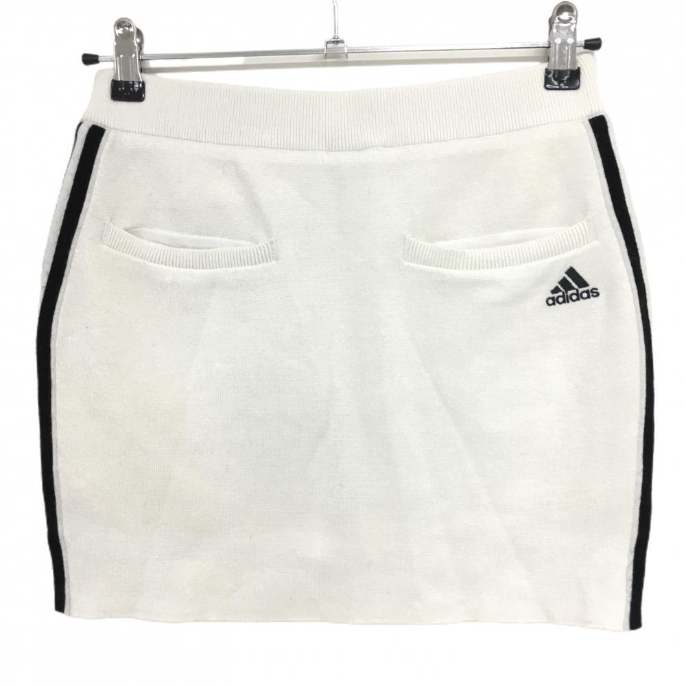 【美品】アディダス ニットスカート 白×黒 ウール混 ウエストゴム 内側インナーパンツ レディース M ゴルフウェア adidas
