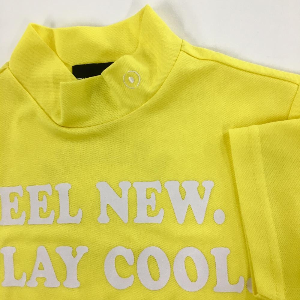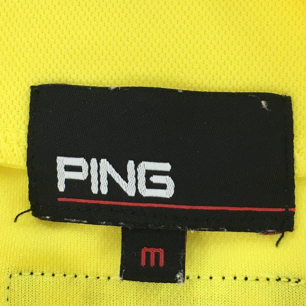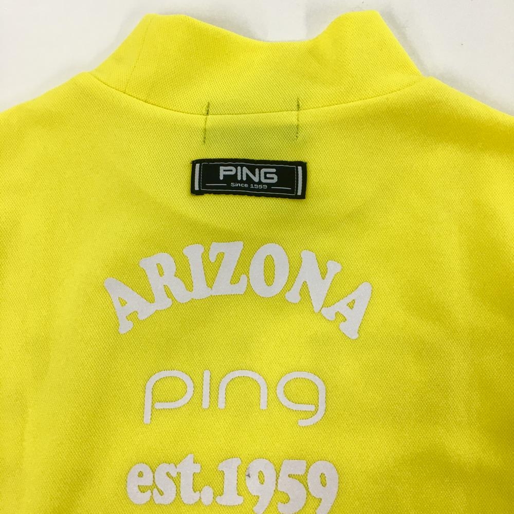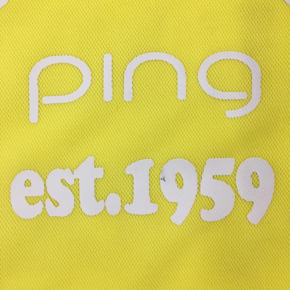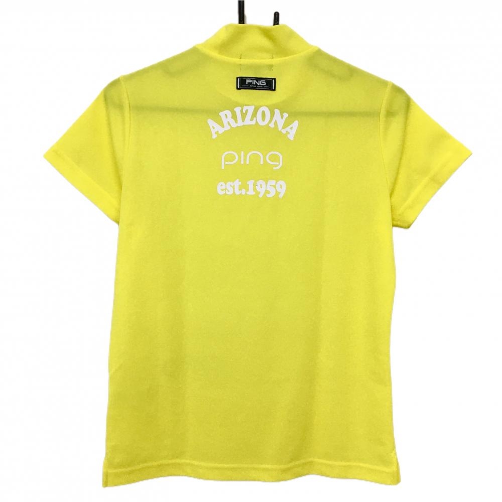 【美品】ピン 半袖ハイネックシャツ イエロー×白 フロントプリント レディース M ゴルフウェア PING