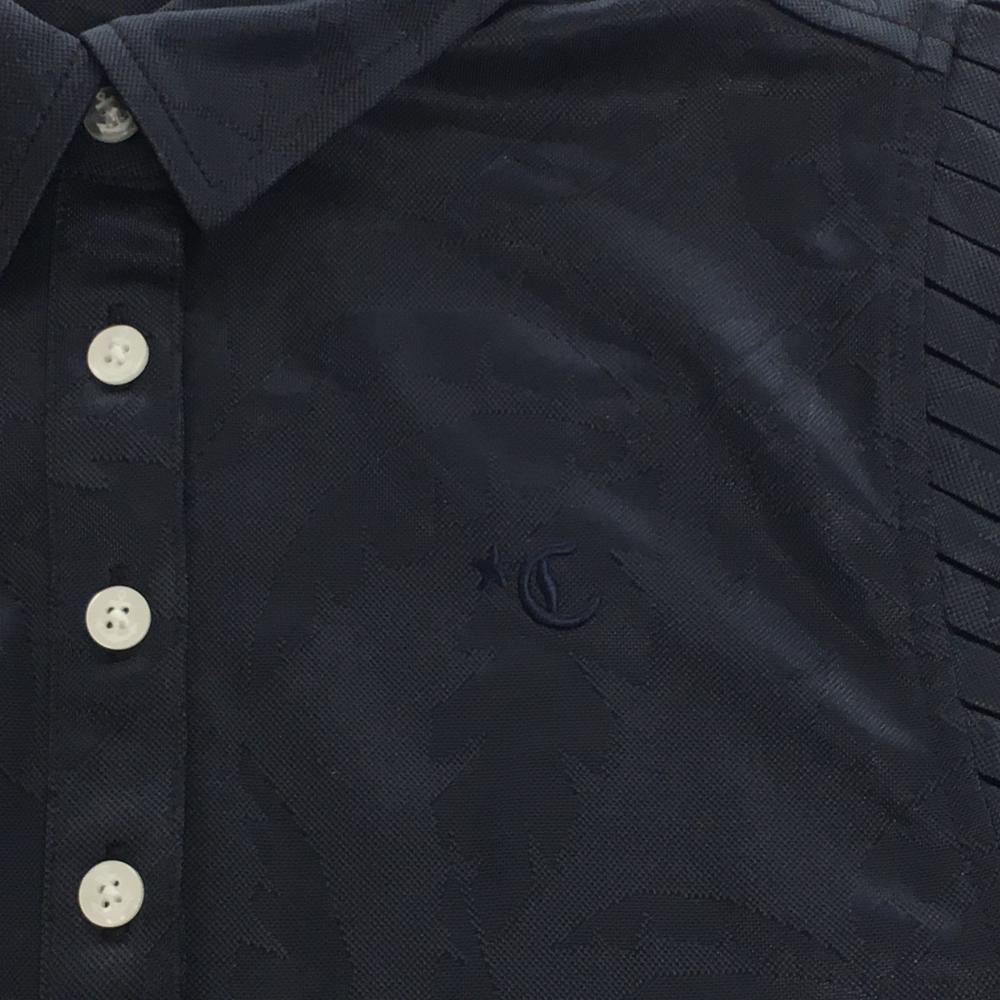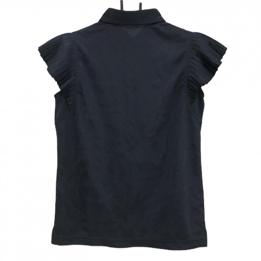 【超美品】キャロウェイ ノースリーブポロシャツ ダークネイビー リーフ柄地模様 一部プリーツ レディース S ゴルフウェア Callaway