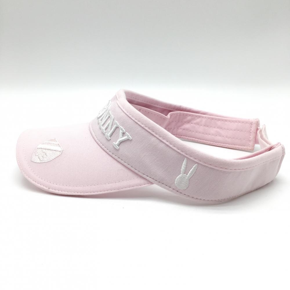 【美品】ジャックバニー サンバイザー ライトピンク×白 立体ロゴ刺しゅう FR ゴルフウェア Jack Bunny