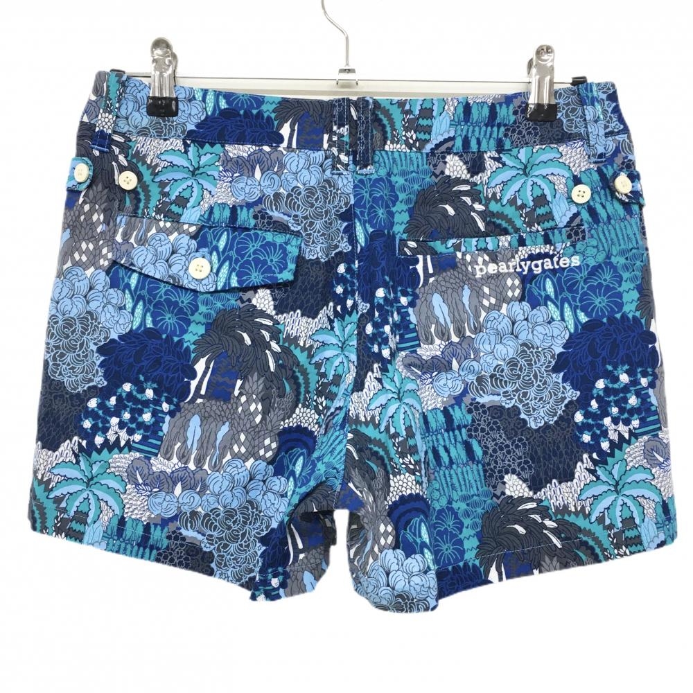 【超美品】パーリーゲイツ ショートパンツ ネイビー×ライトブルー 総柄 レディース 1(M) ゴルフウェア PEARLY GATES
