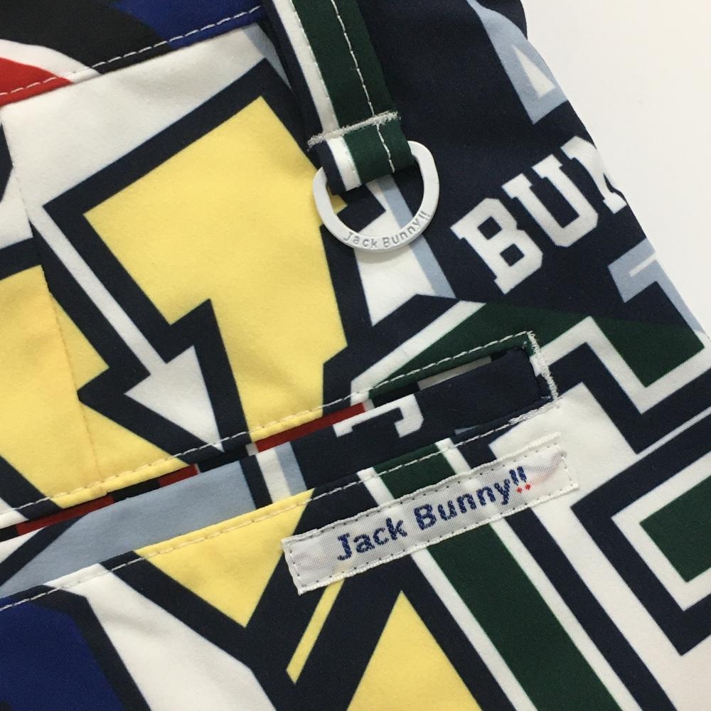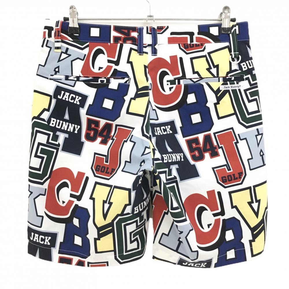 【超美品】ジャックバニー ハーフパンツ 白×マルチカラー 英字柄 メンズ 4(M) ゴルフウェア Jack Bunny