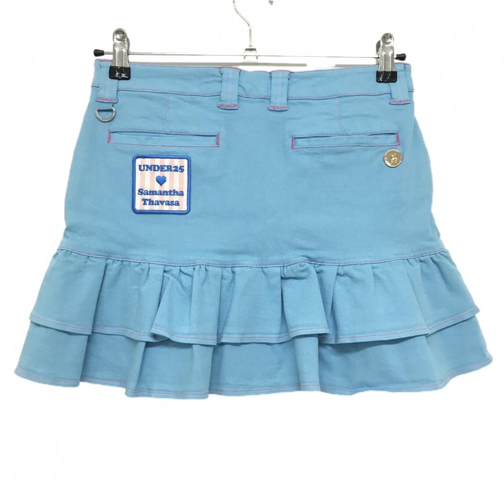 サマンサタバサUNDER25 スカート ライトブルー×ピンク 裾フリル 紙タグ付 レディース M ゴルフウェア Samantha Thavasa