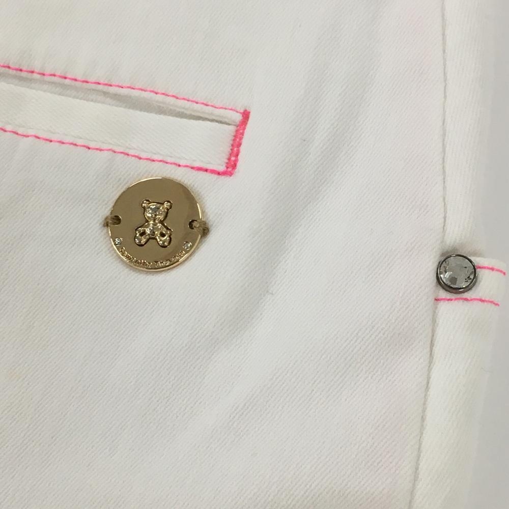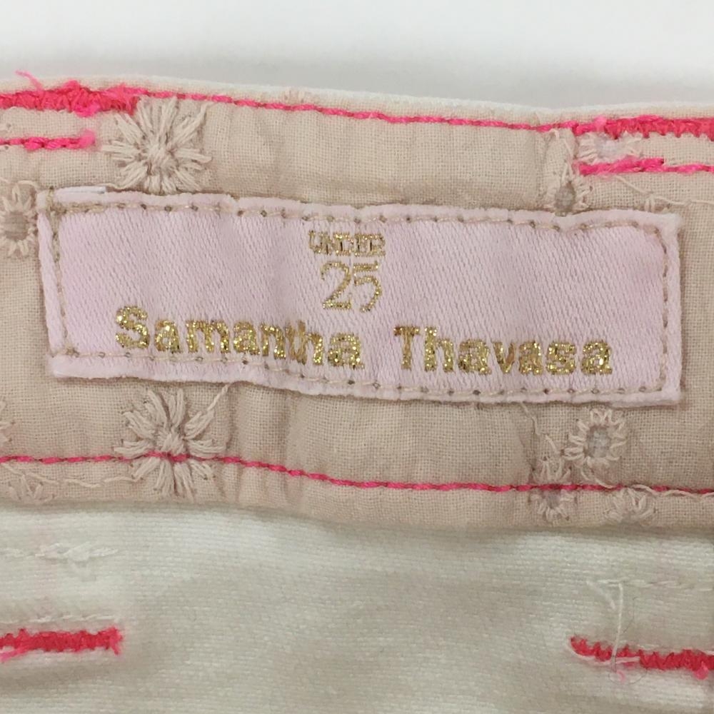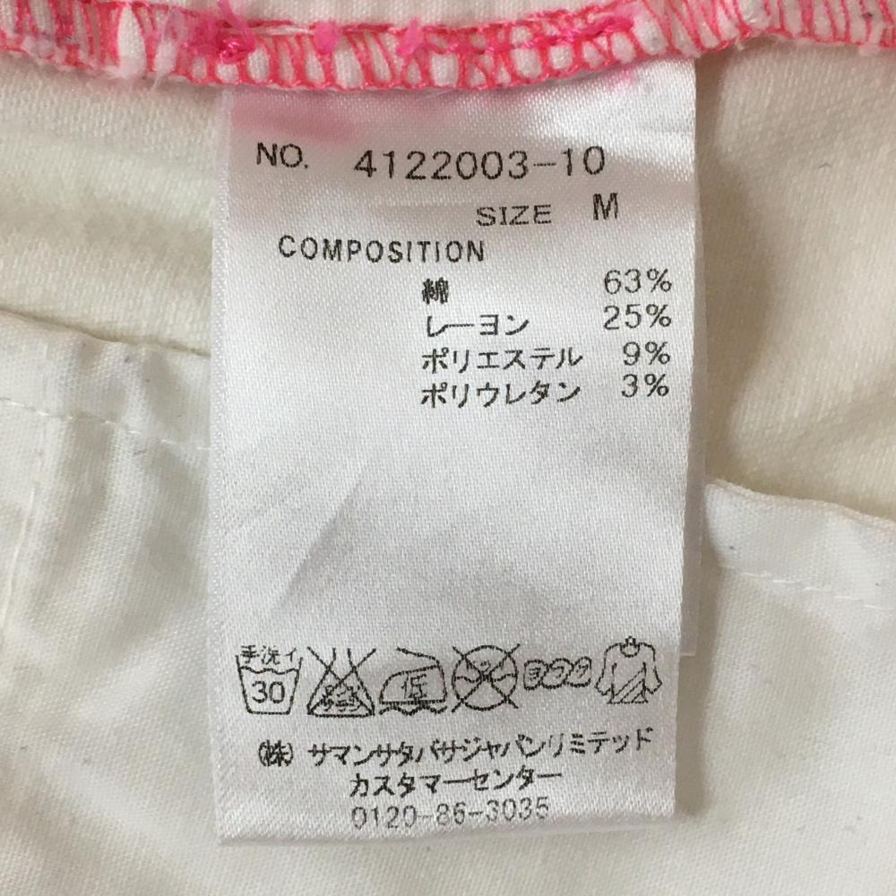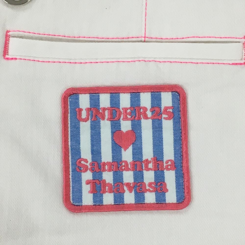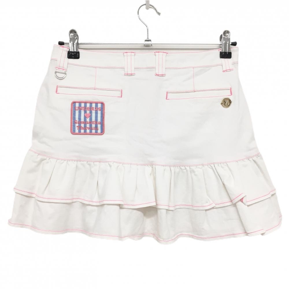 サマンサタバサUNDER25 フリルスカート 白×ピンク ステッチ バックロゴワッペン レディース M ゴルフウェア Samantha Thavasa