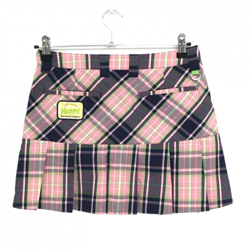 サマンサタバサUNDER25 プリーツスカート ピンク×ネイビー チェック柄 バックロゴ レディース M ゴルフウェア Samantha Thavasa