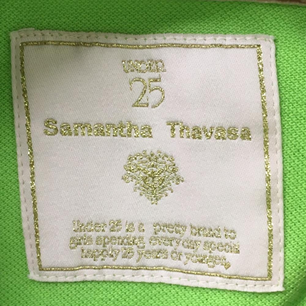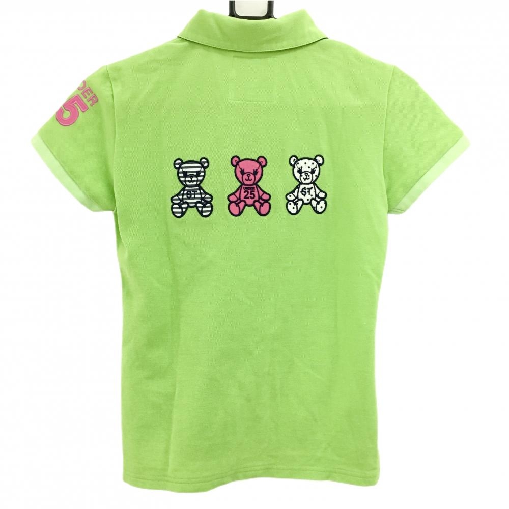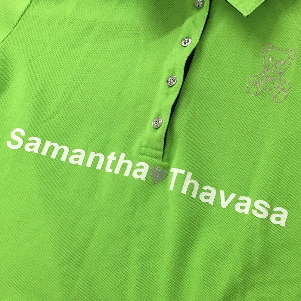 【超美品】サマンサタバサUNDER25 半袖ポロシャツ ライトグリーン 袖ロゴピンク クマ刺しゅう レディース M ゴルフウェア Samantha Thavasa