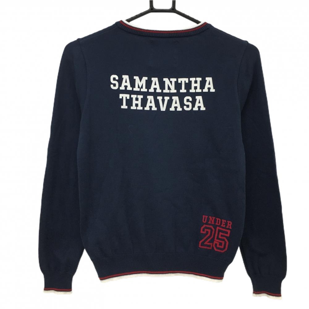 サマンサタバサUNDER25 セーター ネイビー×白 バックロゴ Vネック ニット レディース M ゴルフウェア Samantha Thavasa