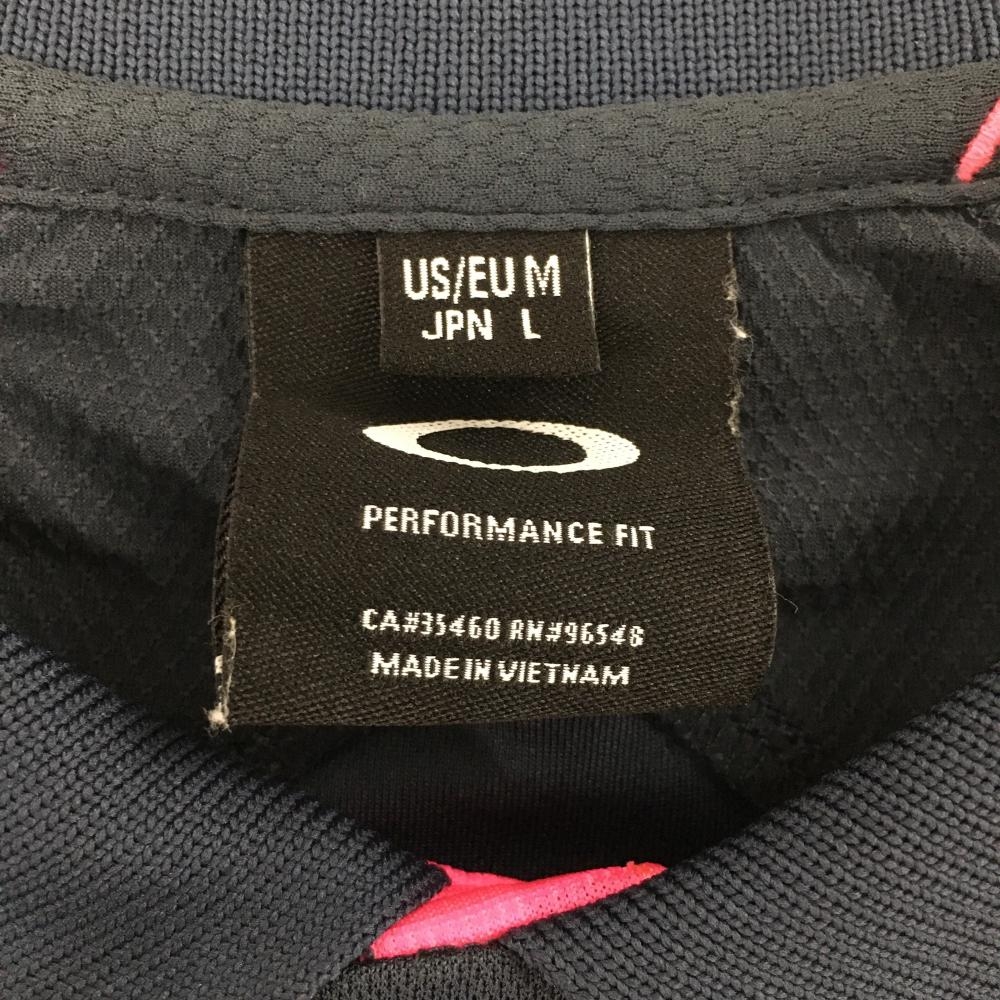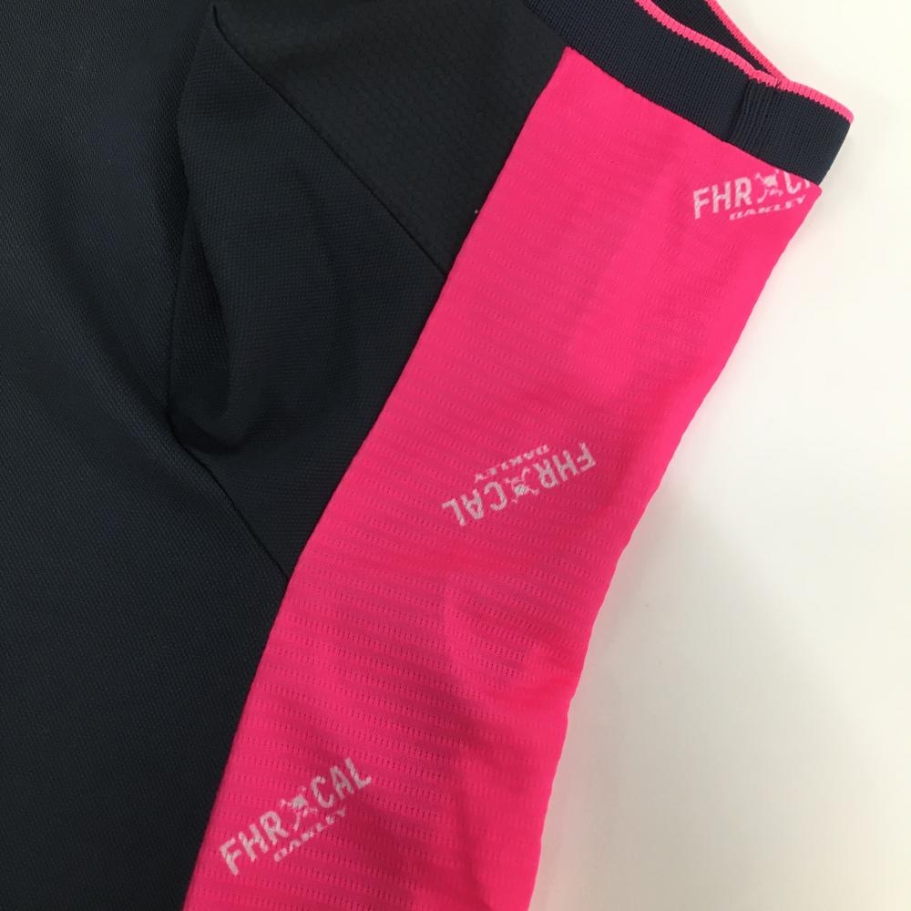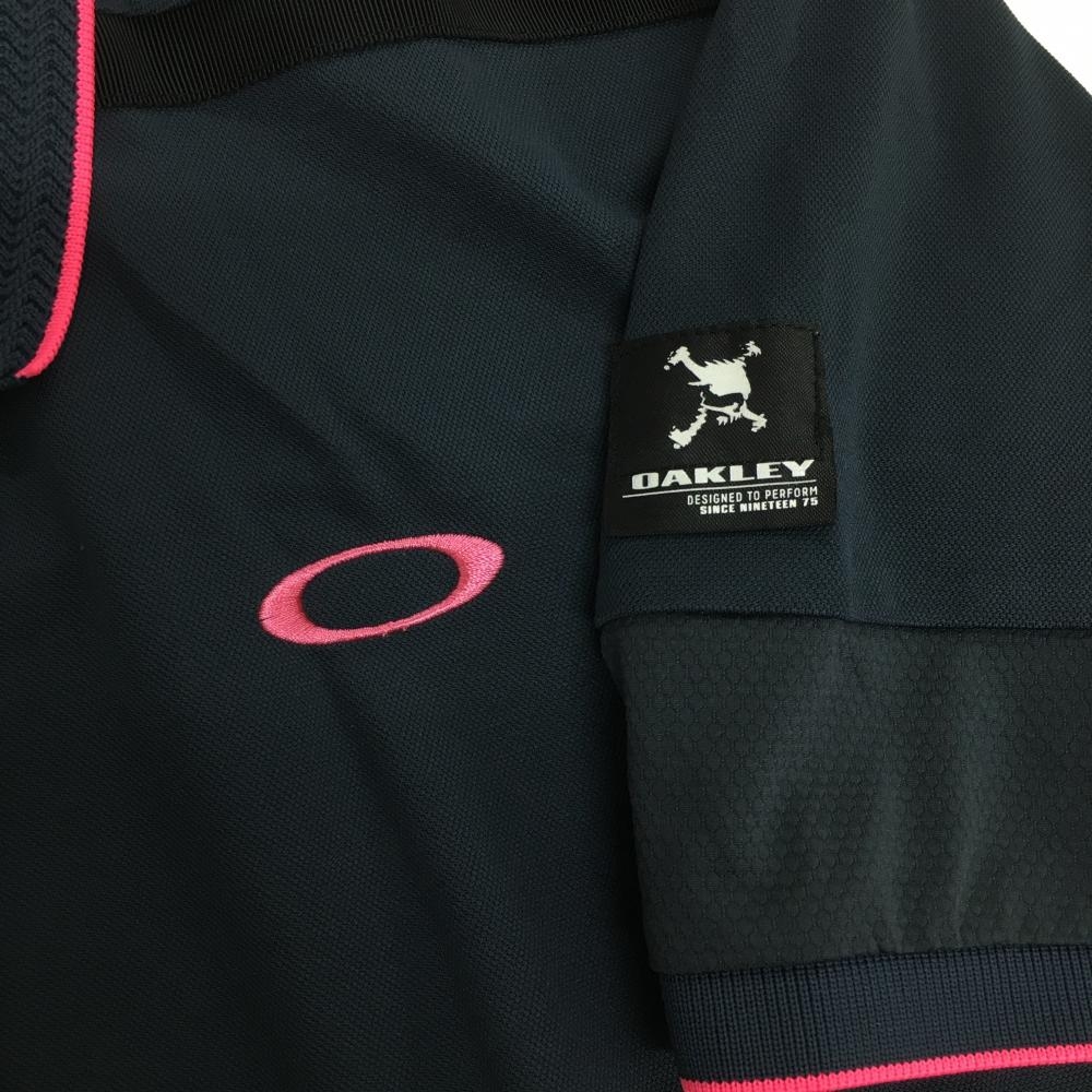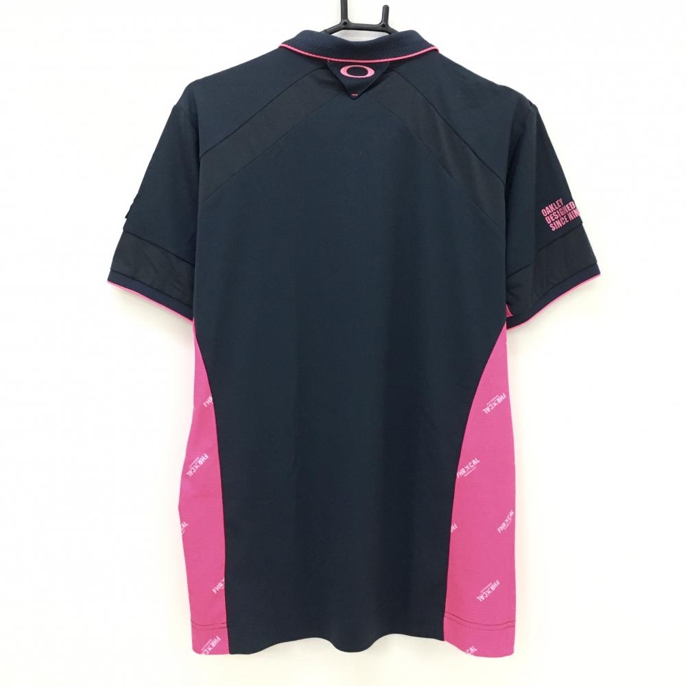 【超美品】オークリー 半袖ポロシャツ ネイビー×蛍光ピンク サイド切替 メンズ L ゴルフウェア Oakley