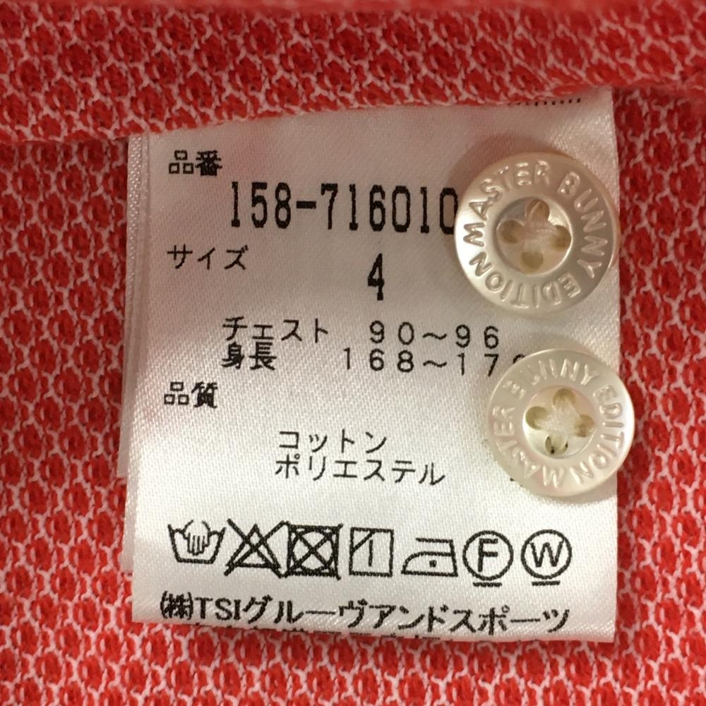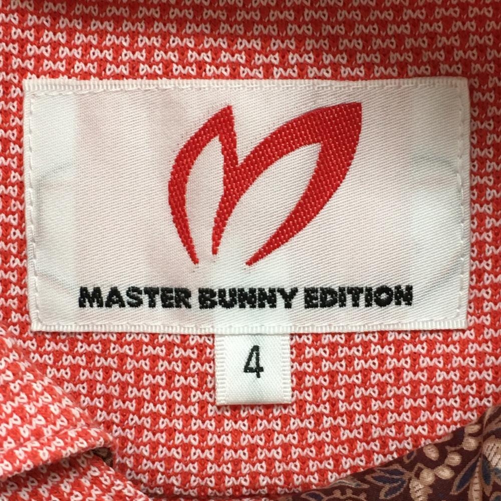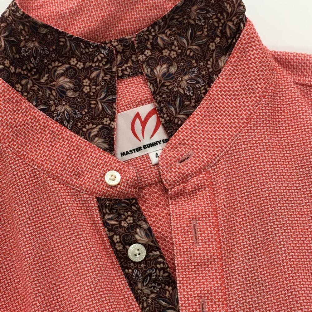 【美品】マスターバニー 半袖ポロシャツ レッド 織生地 前立て内側・襟裏花柄 メンズ 4(M) ゴルフウェア MASTER BUNNY EDITION