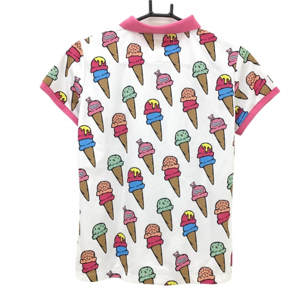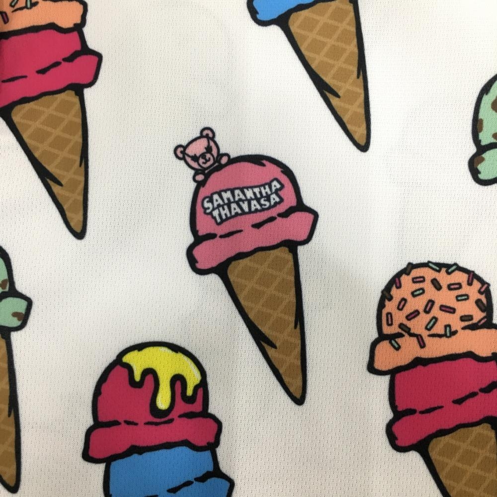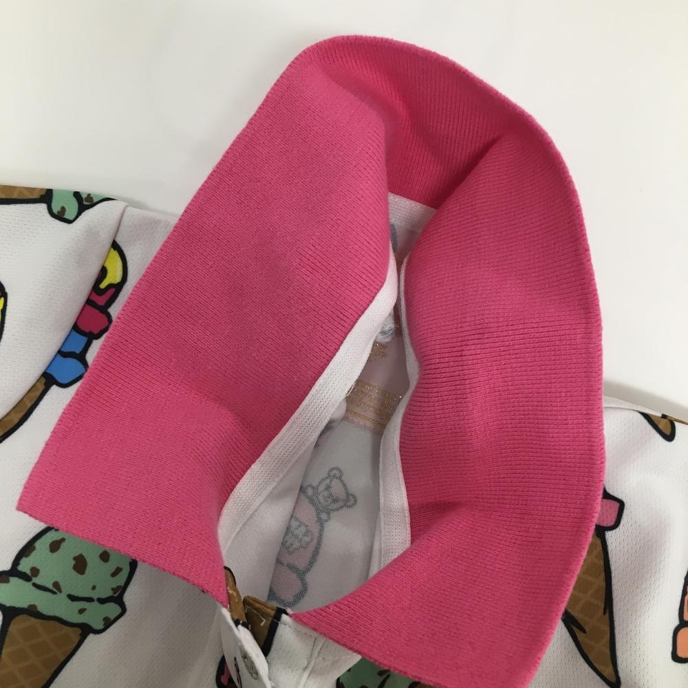 【美品】サマンサタバサUNDER25 半袖ポロシャツ 白×ピンク アイス柄 クマ レディース M ゴルフウェア Samantha Thavasa