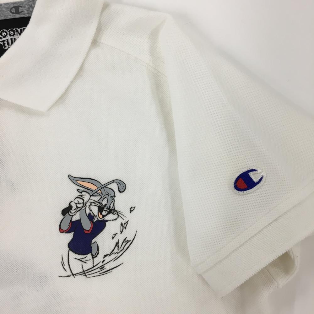 【美品】チャンピオン×LOONEY TUNES 半袖ポロシャツ 白 ビームスゴルフ バックプリント レディース X-SMALL ゴルフウェア Champion