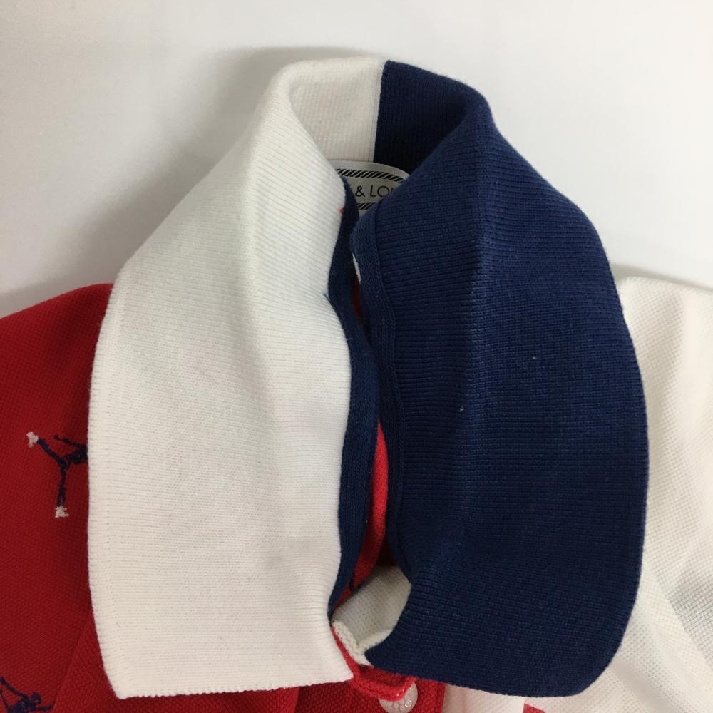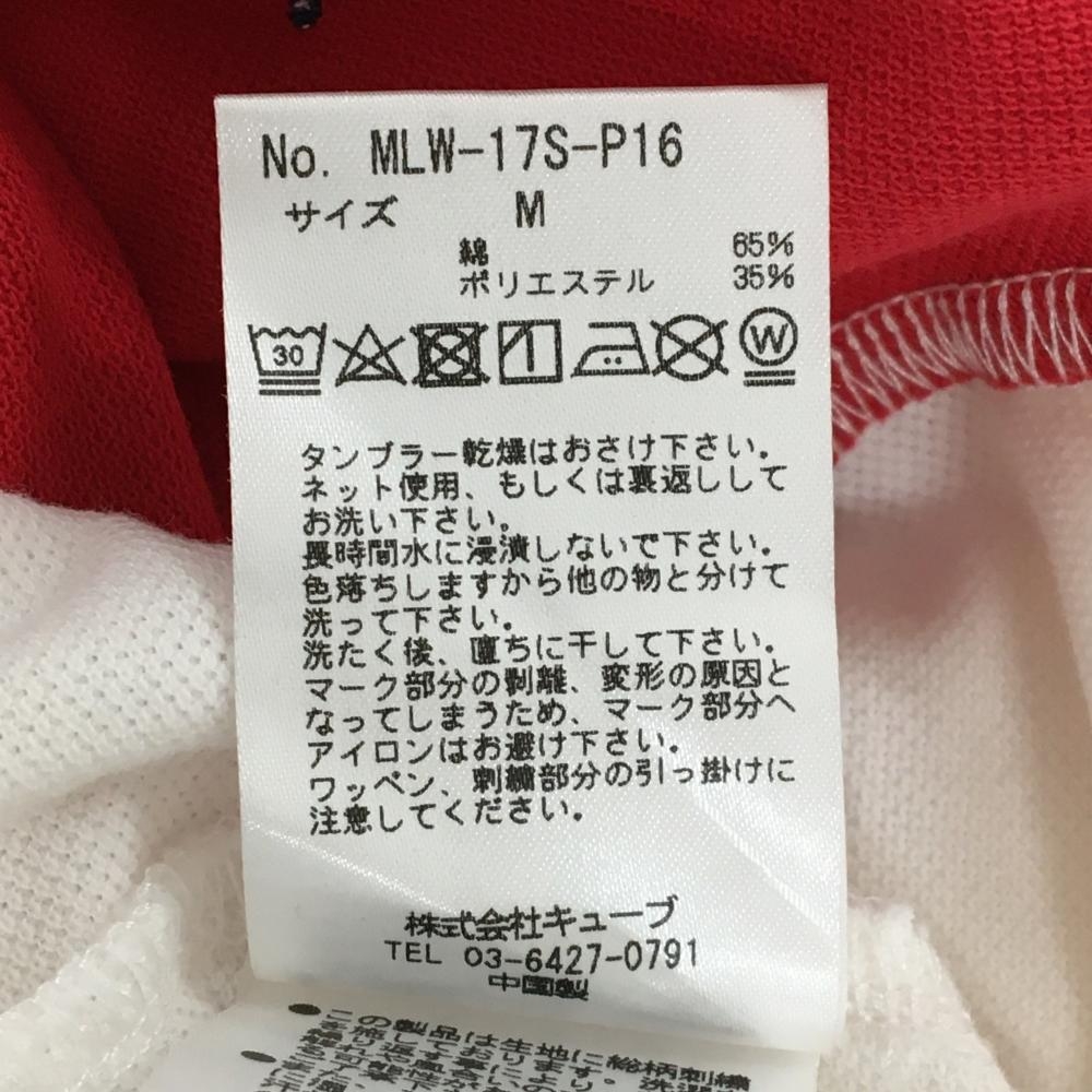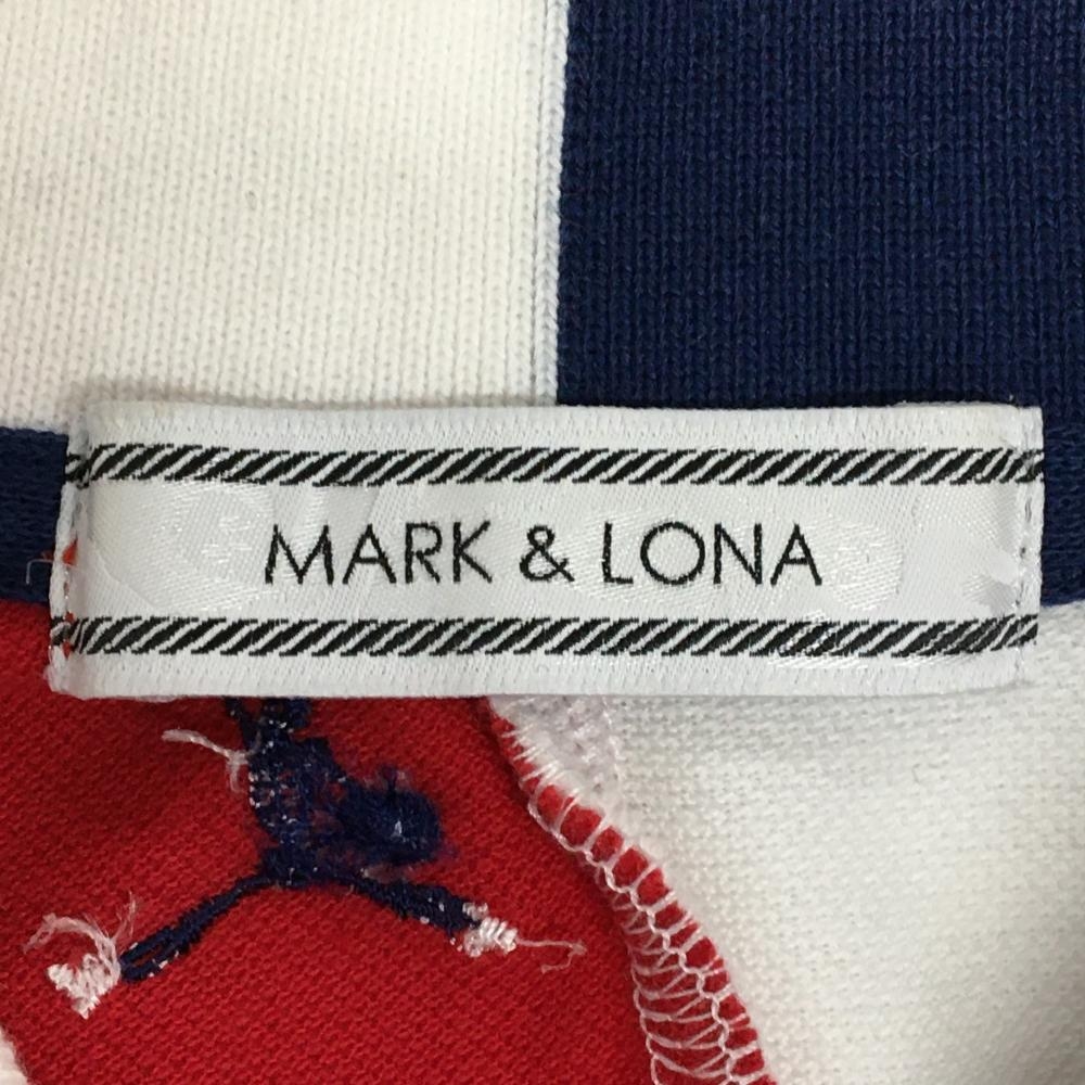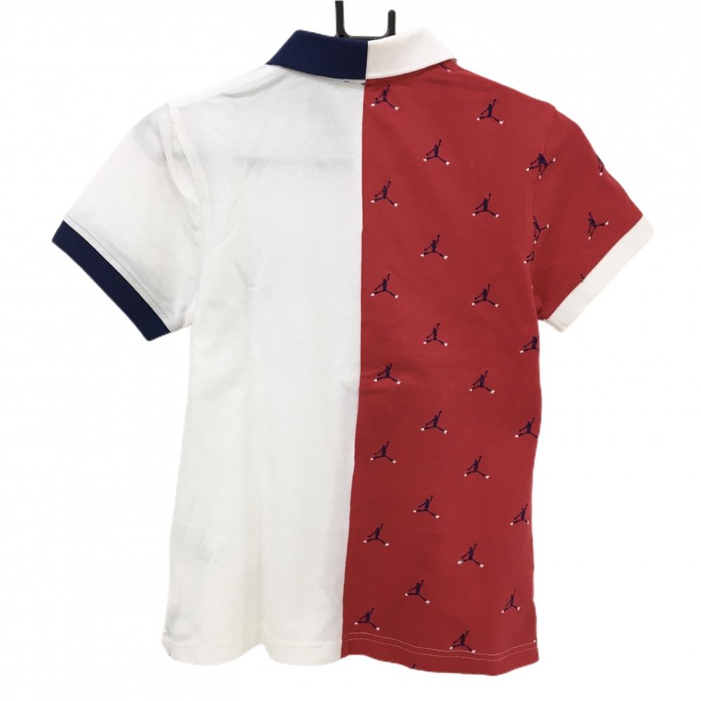 マークアンドロナ 半袖ポロシャツ 白×レッド 一部総柄 スカル レディース M ゴルフウェア MARK&LONA