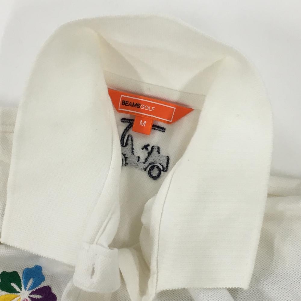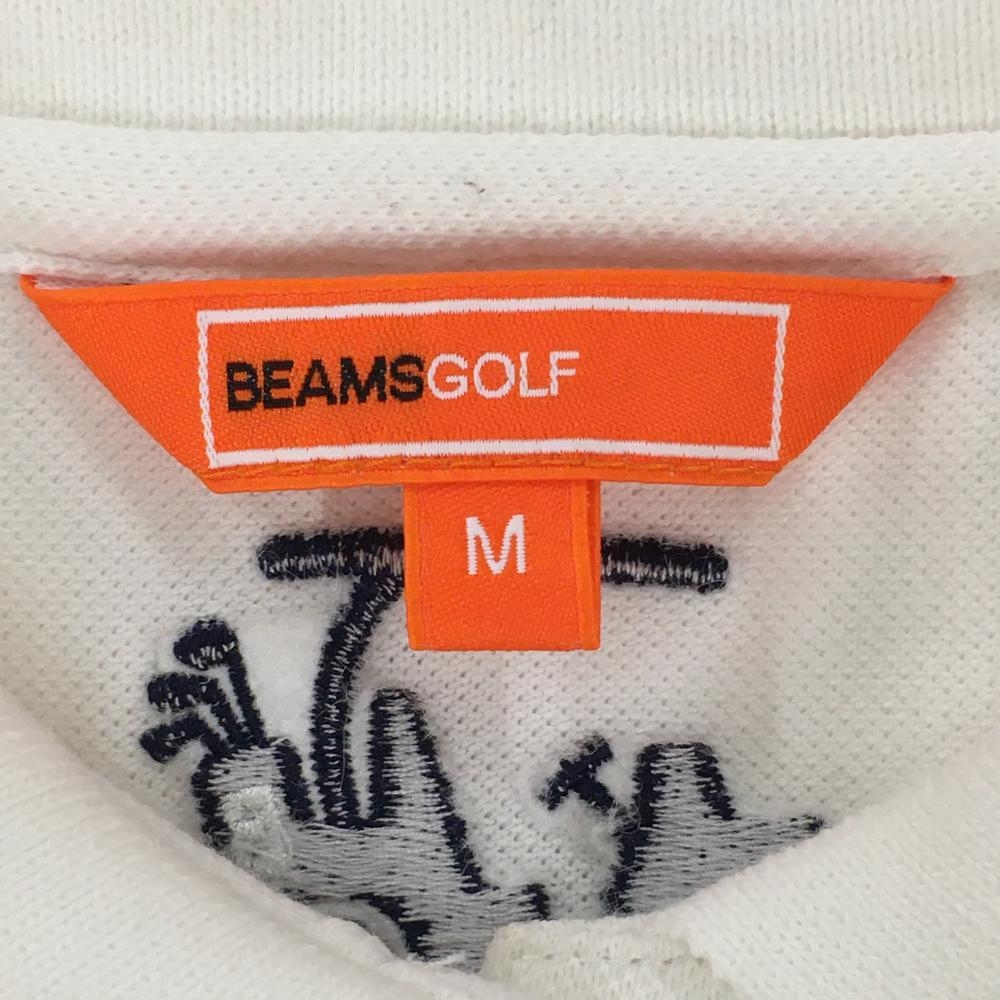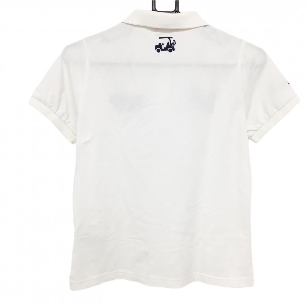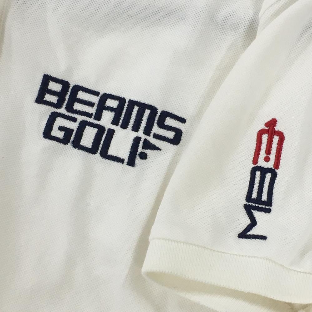 【美品】ビームスゴルフ 半袖ポロシャツ 白×ネイビー 刺しゅう レディース M ゴルフウェア BEAMS GOLF
