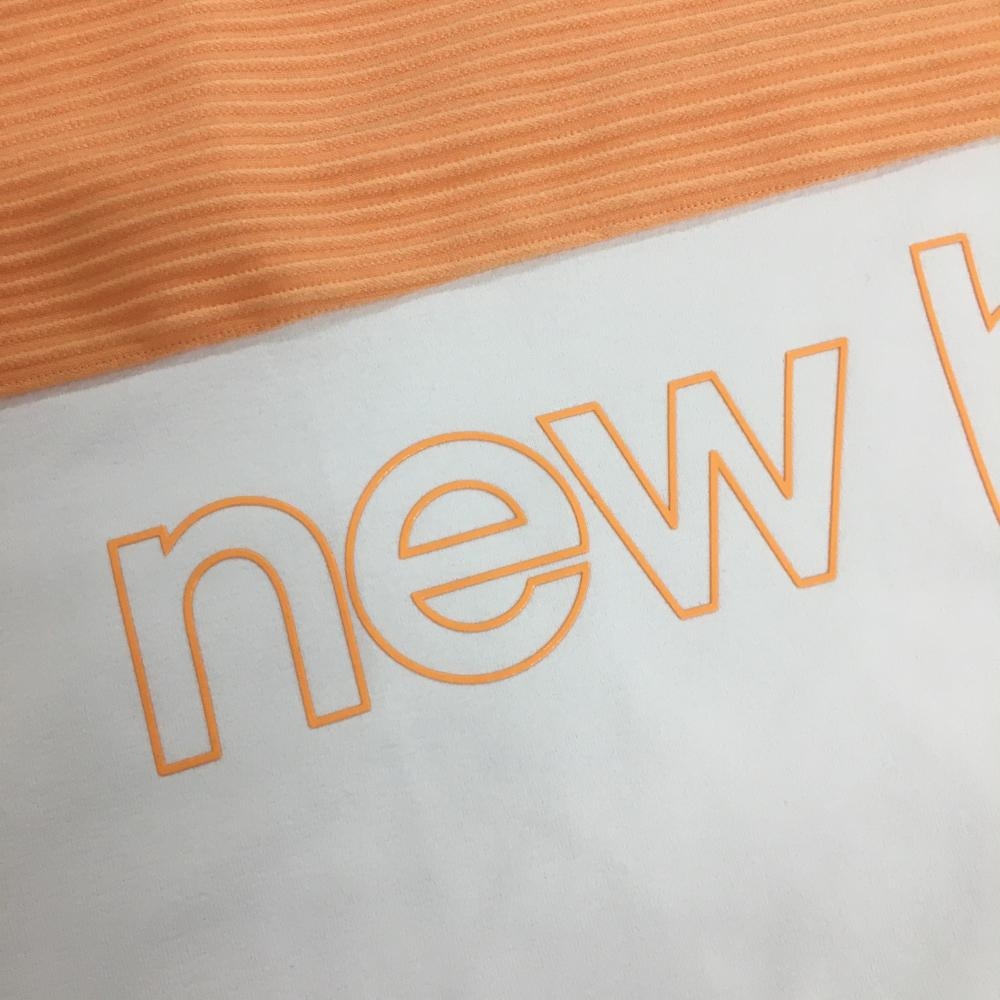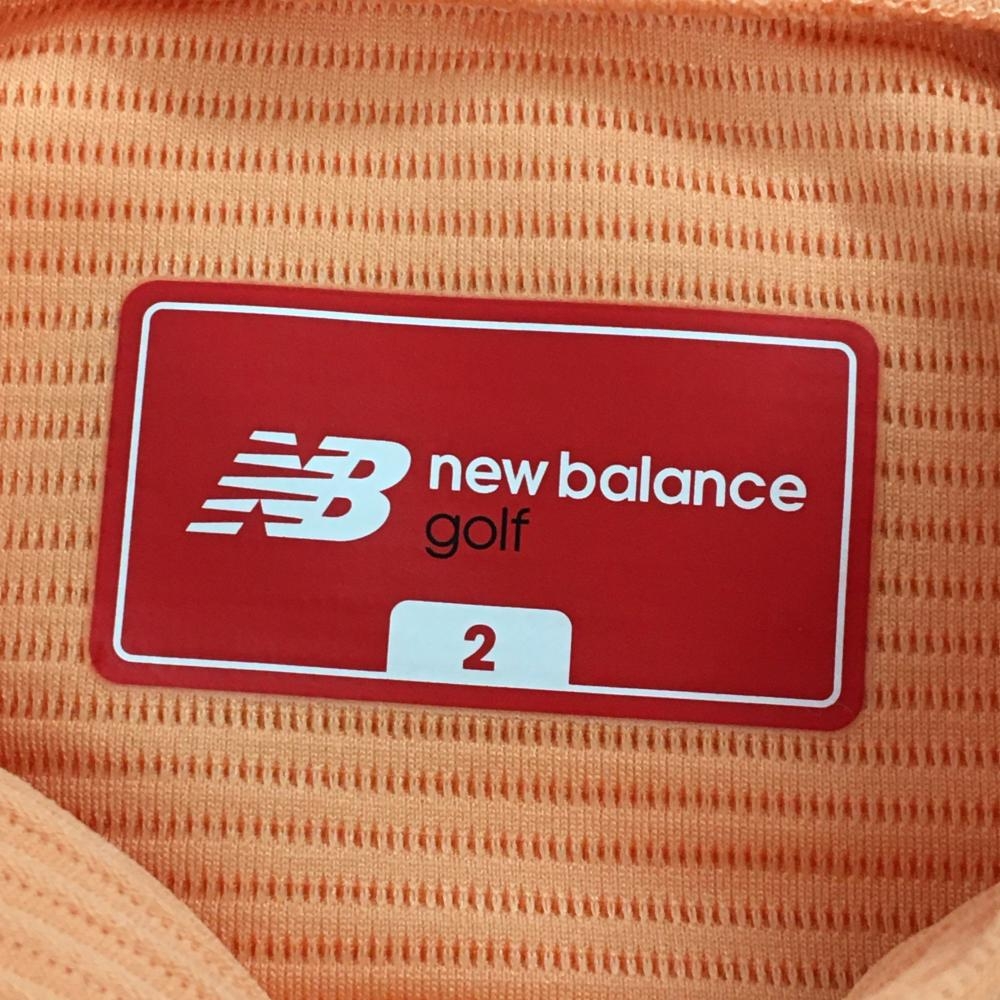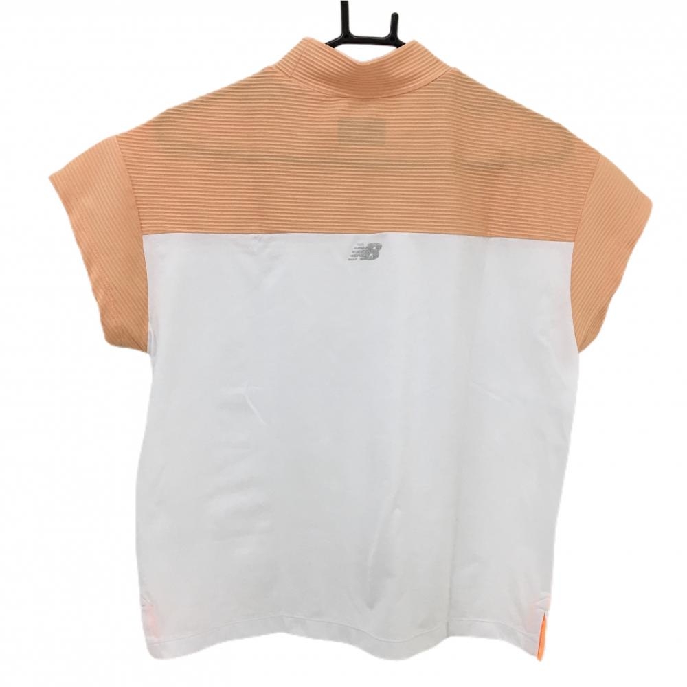 【超美品】ニューバランスゴルフ 半袖ハイネックシャツ 白×オレンジ 一部凹凸生地 レディース 2(L) ゴルフウェア New Balance