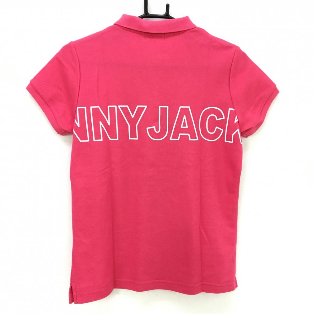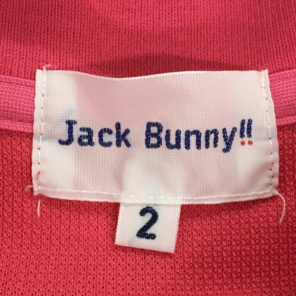 ジャックバニー 半袖ポロシャツ ピンク×白 ロゴプリント レディース 2(L) ゴルフウェア Jack Bunny