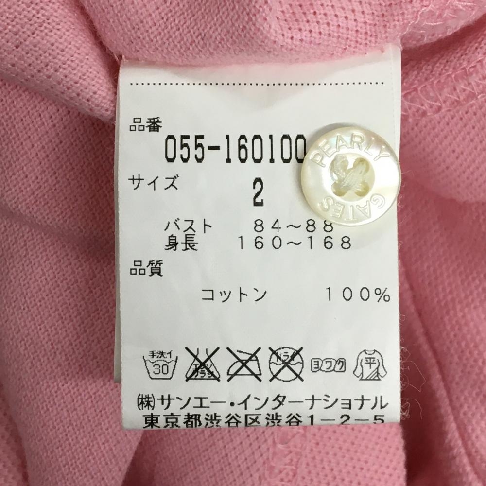 パーリーゲイツ 半袖ポロシャツ ピンク ロゴ白 レディース 2 ゴルフウェア PEARLY GATES