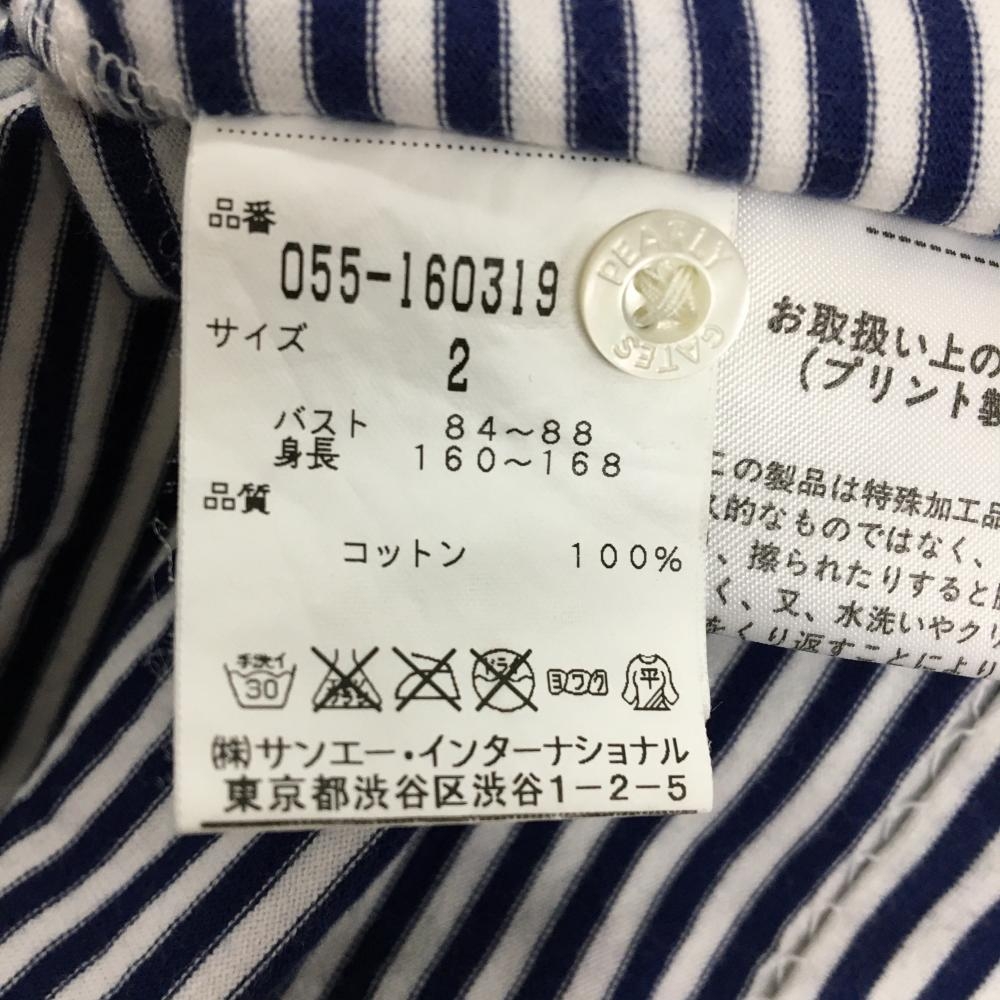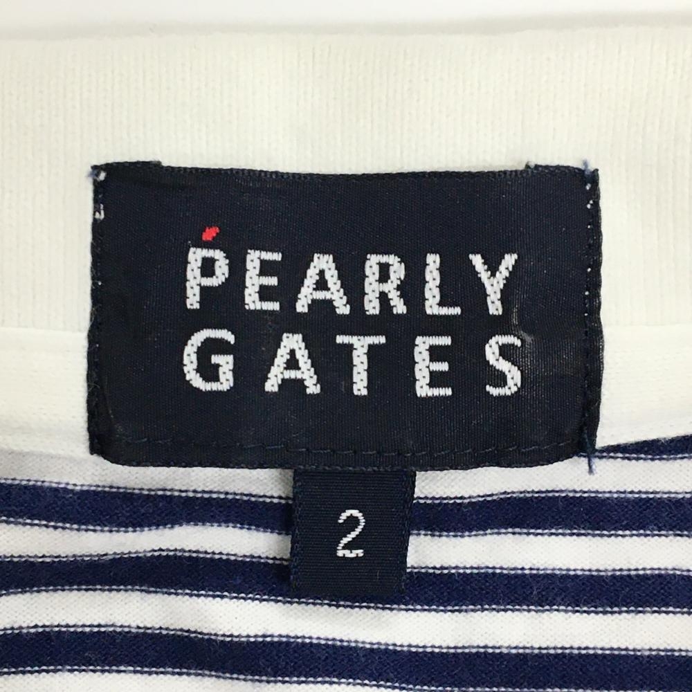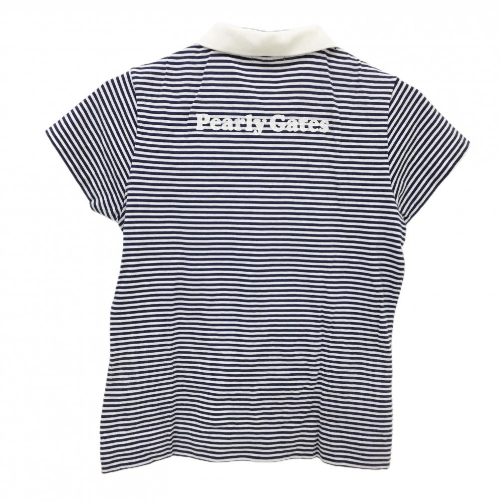パーリーゲイツ 半袖ポロシャツ 白×ネイビー ボーダー レディース 2(L) ゴルフウェア PEARLY GATES