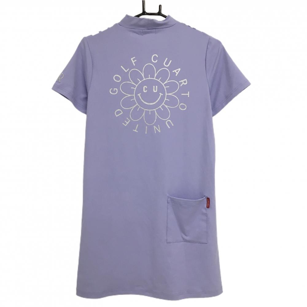 【超美品】クアルトユナイテッド 半袖ハイネックワンピース ライトパープル×白 レディース M ゴルフウェア CUARTO UNITED