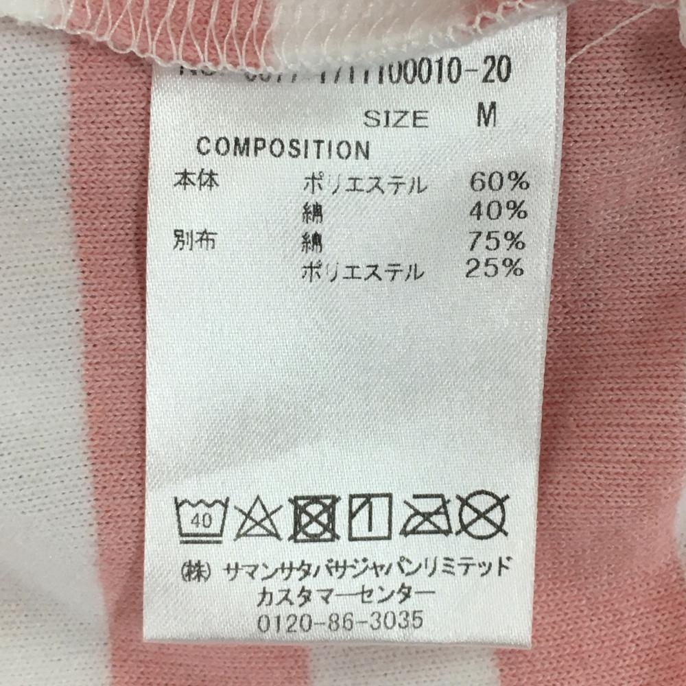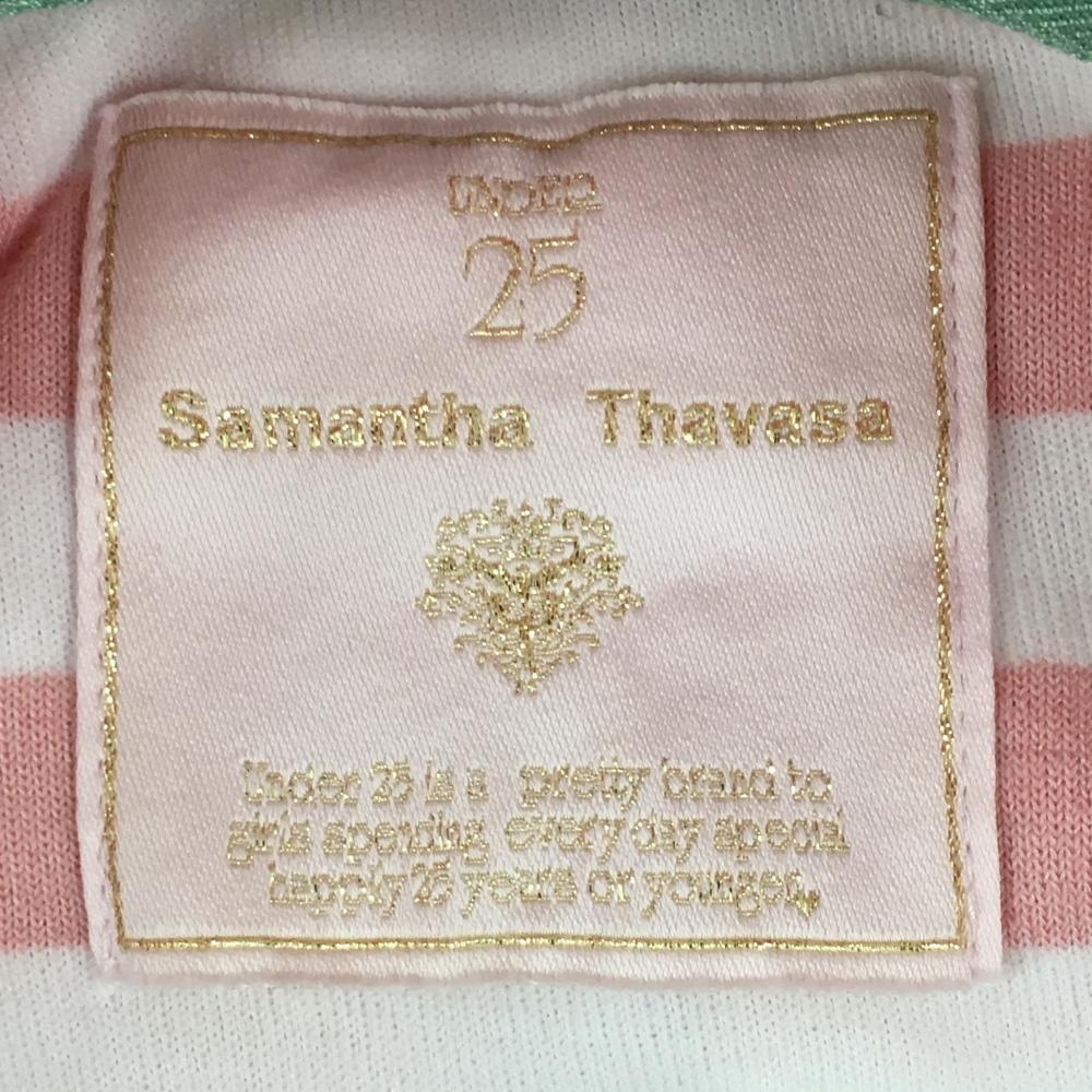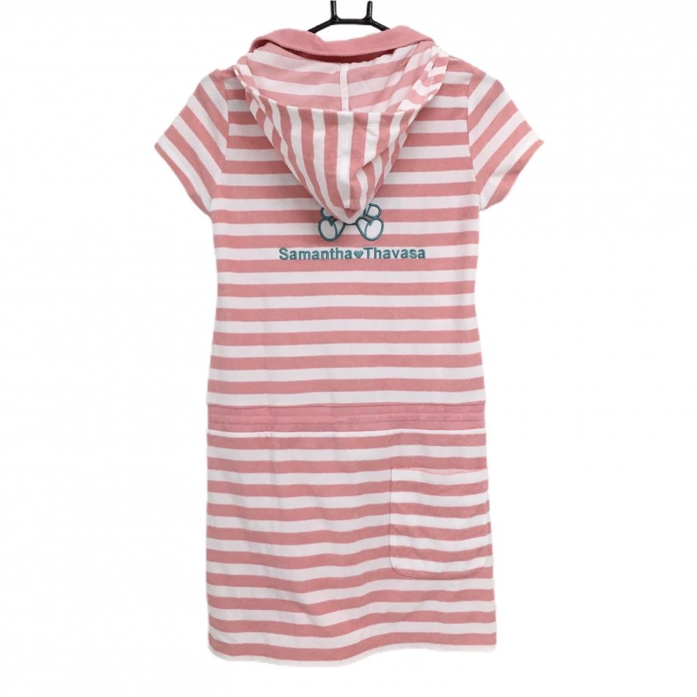 【美品】サマンサタバサUNDER25 フード付き半袖ワンピース ピンク×白 ボーダー柄 パイル地 レディース M ゴルフウェア Samantha Thavasa