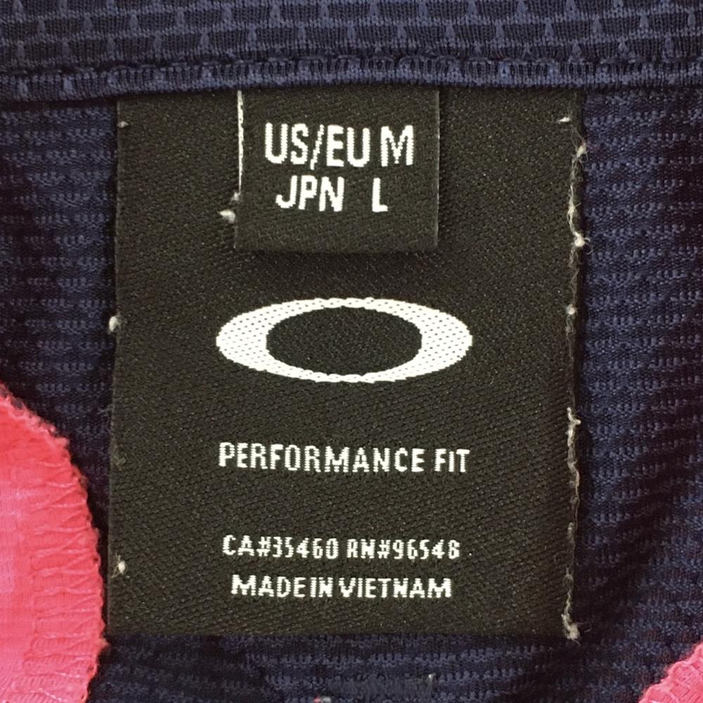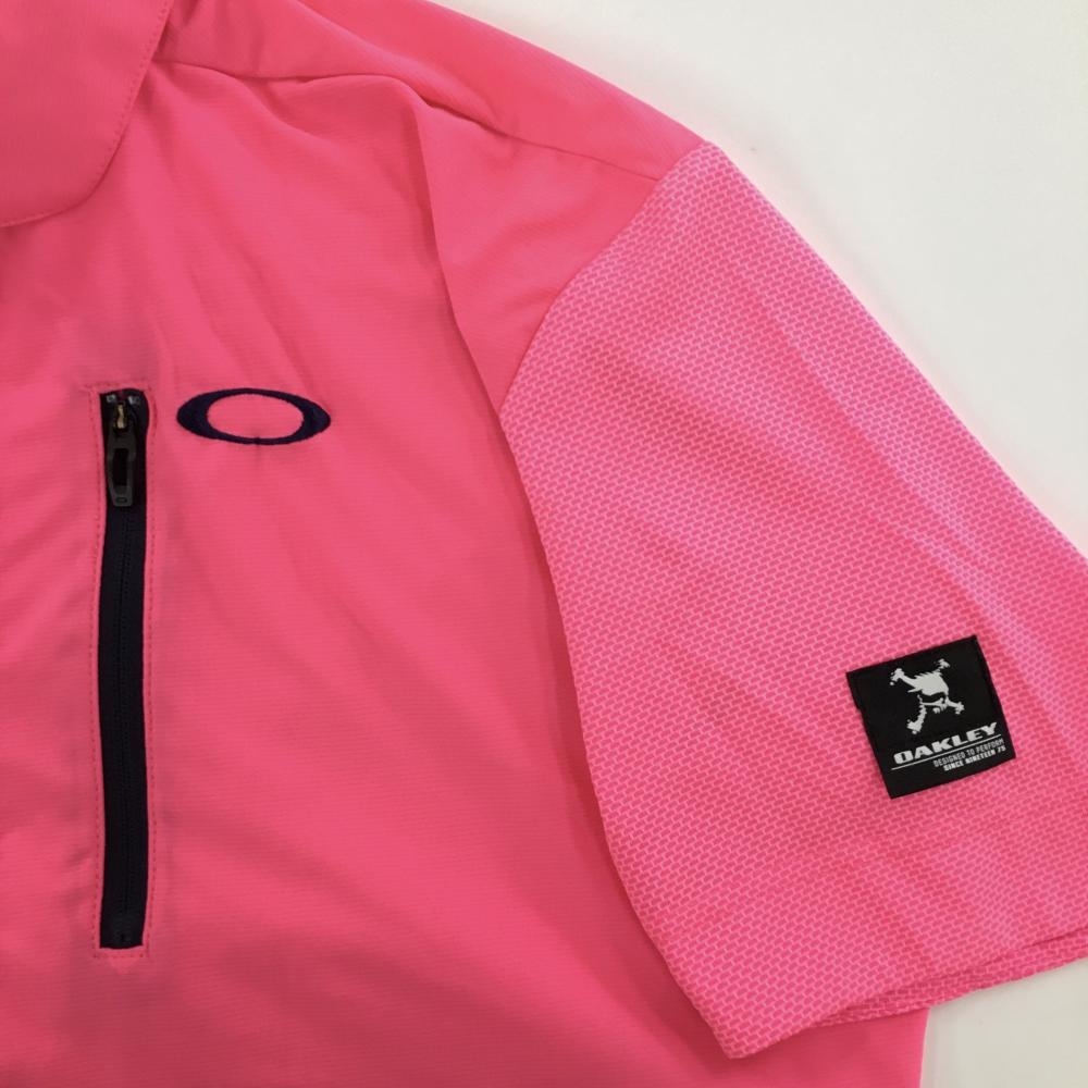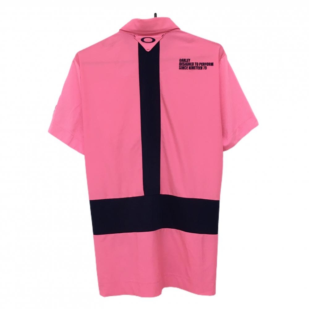 【超美品】オークリー 半袖ポロシャツ 蛍光ピンク×ネイビー 背面切替 メンズ L ゴルフウェア Oakley