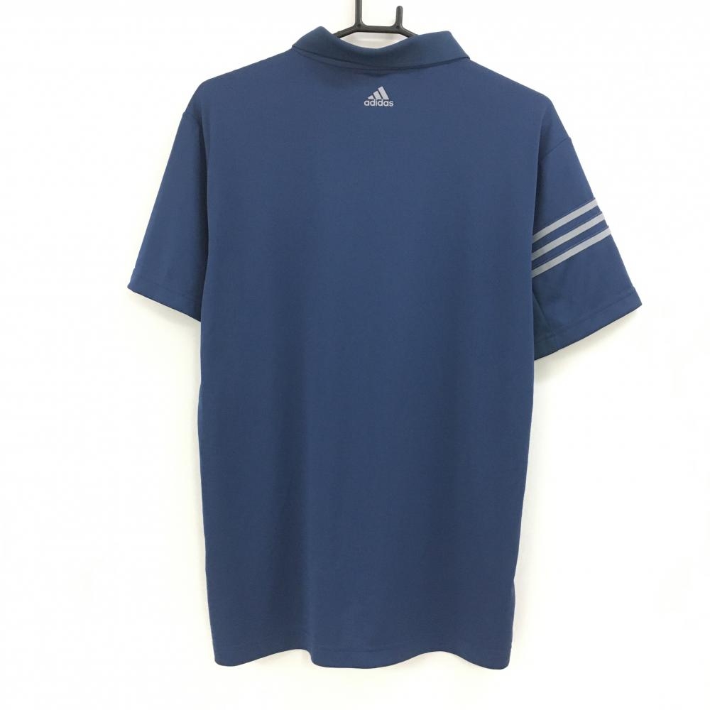 【超美品】アディダス 半袖ポロシャツ ネイビー×グレー 袖3ライン climacool メンズ O/XG ゴルフウェア adidas