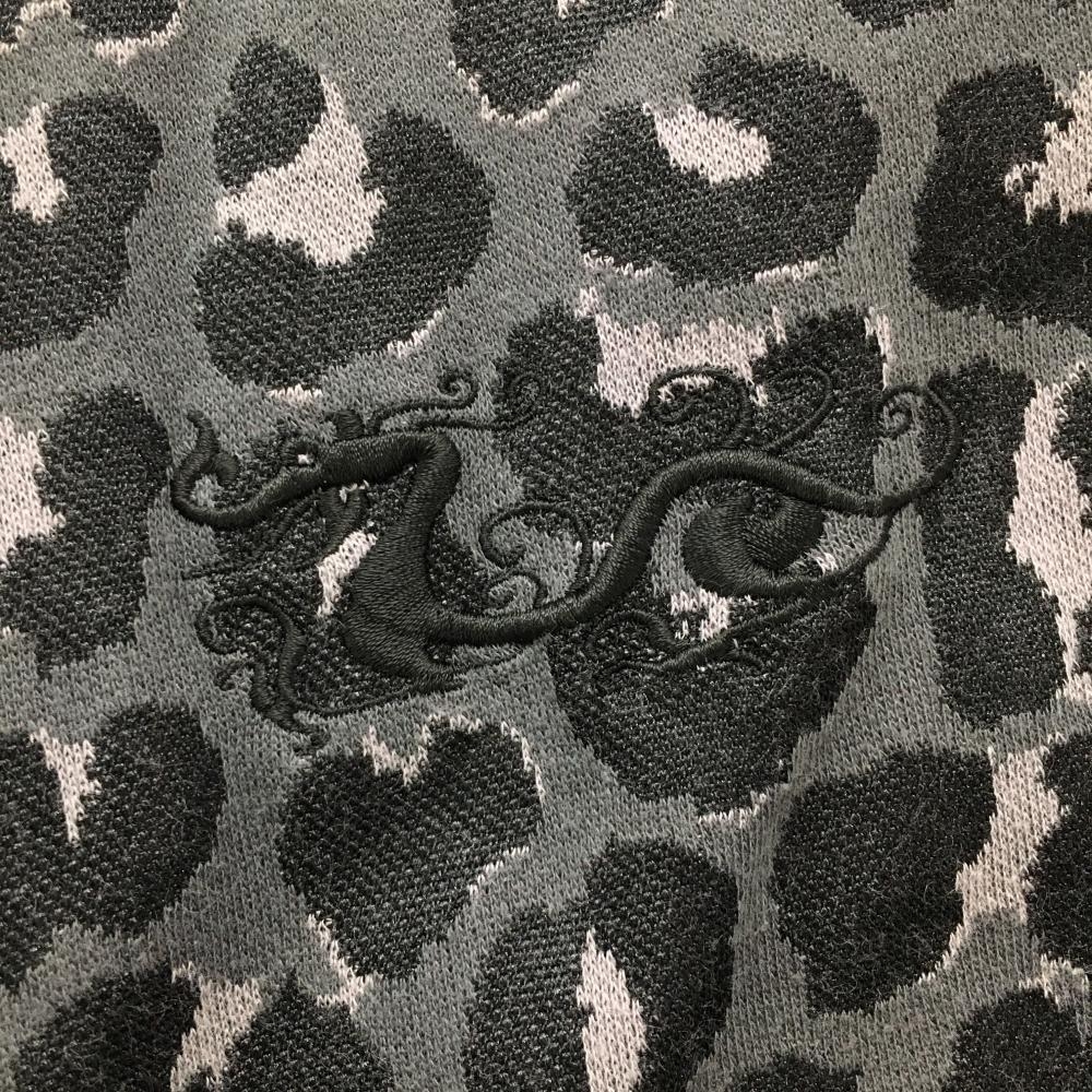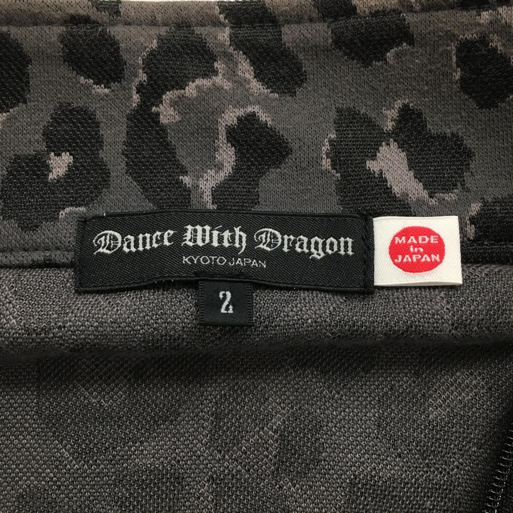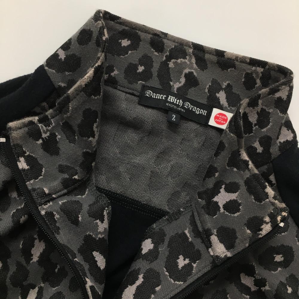 ダンスウィズドラゴン 長袖ハイネックシャツ グレー×黒 前身頃レオパード柄 黒地微起毛 メンズ 2(M) ゴルフウェア Dance With Dragon