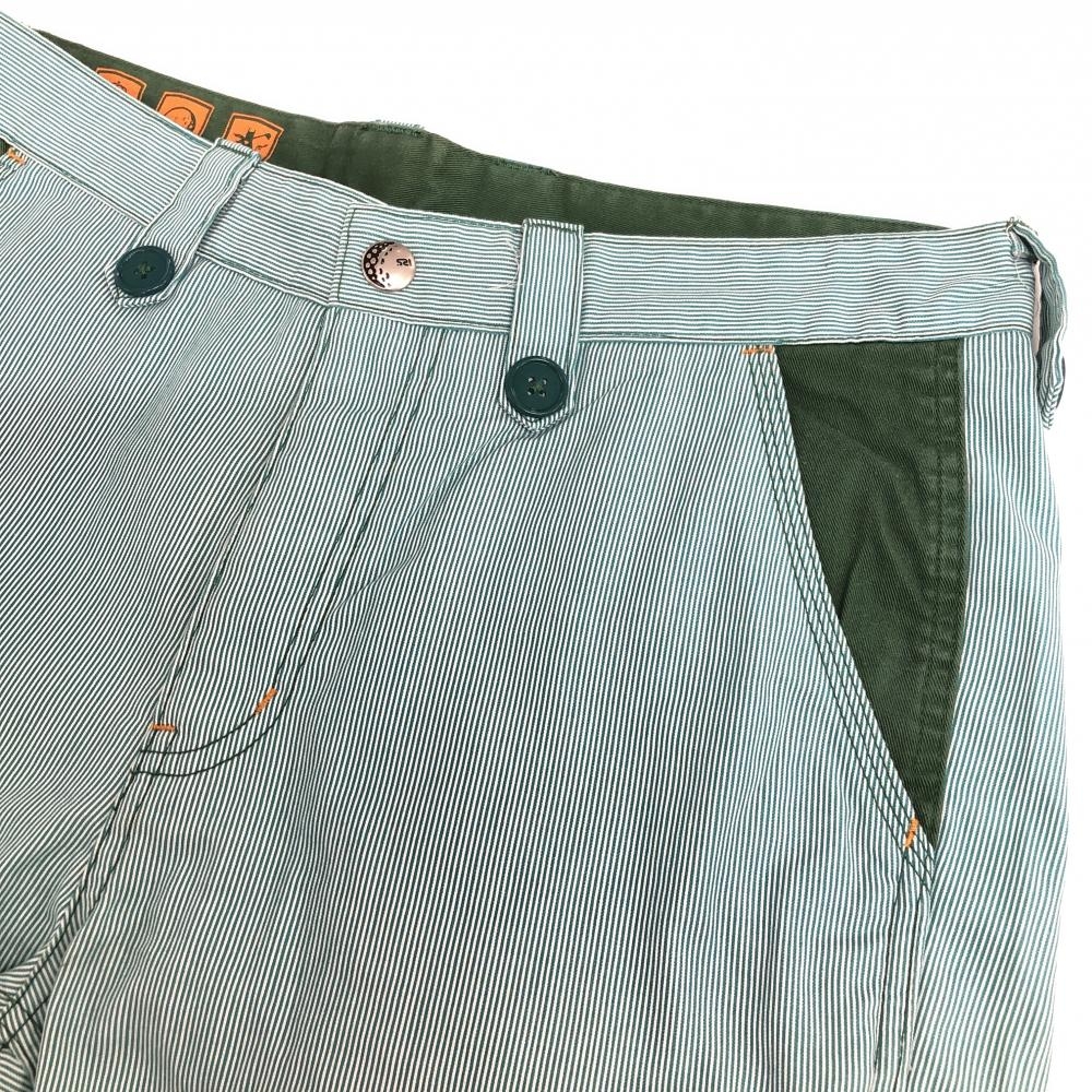 ラッセルノ ハーフパンツ グリーン×白 細ストライプ メンズ L ゴルフウェア RUSSELUNO