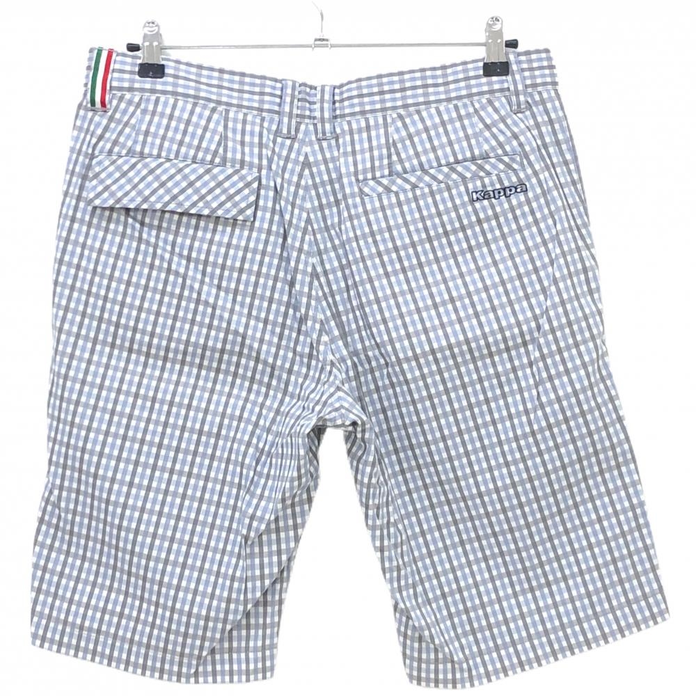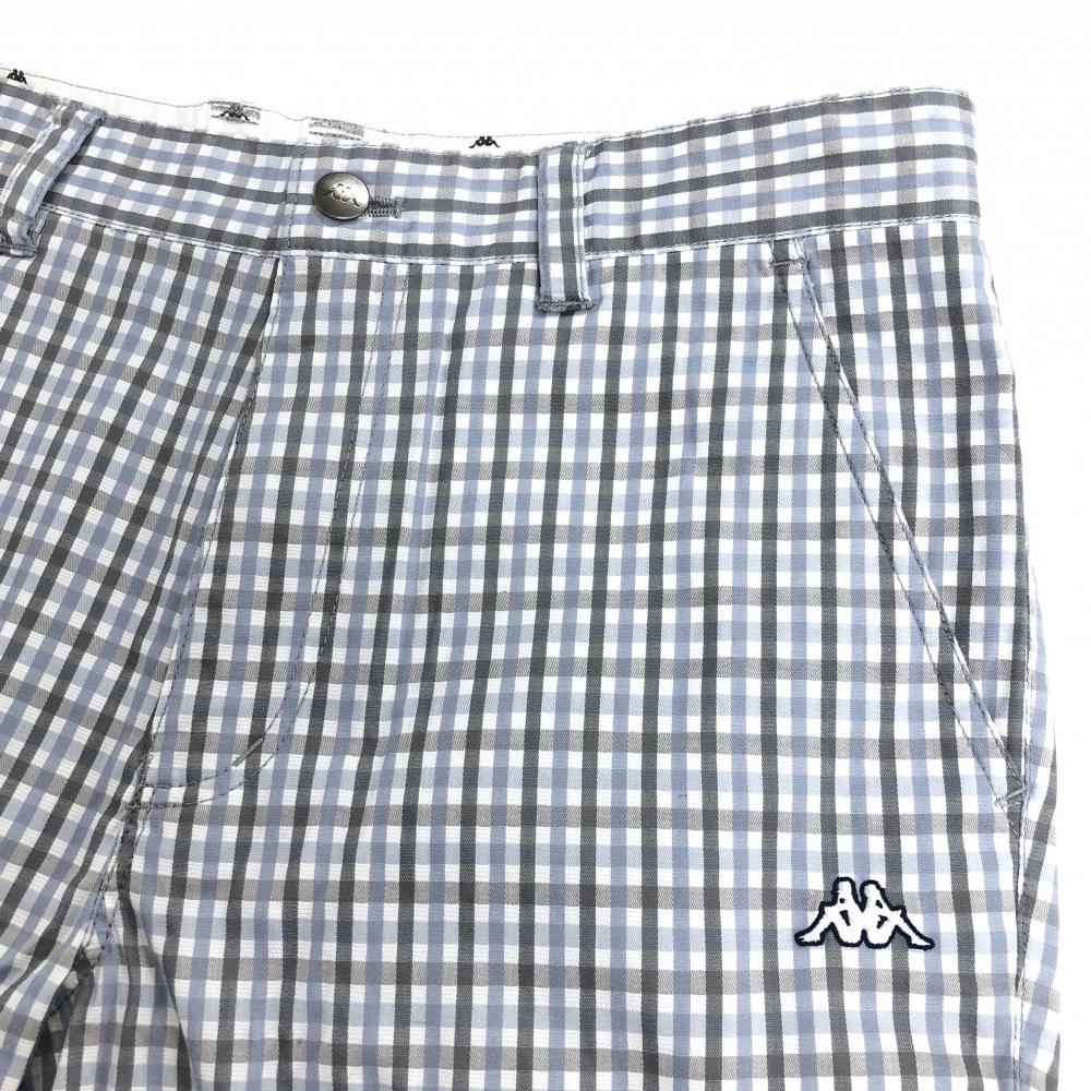 【超美品】カッパ ハーフパンツ グレー×スモーキーブルー チェック柄 ロゴ刺しゅう メンズ 82 ゴルフウェア Kappa