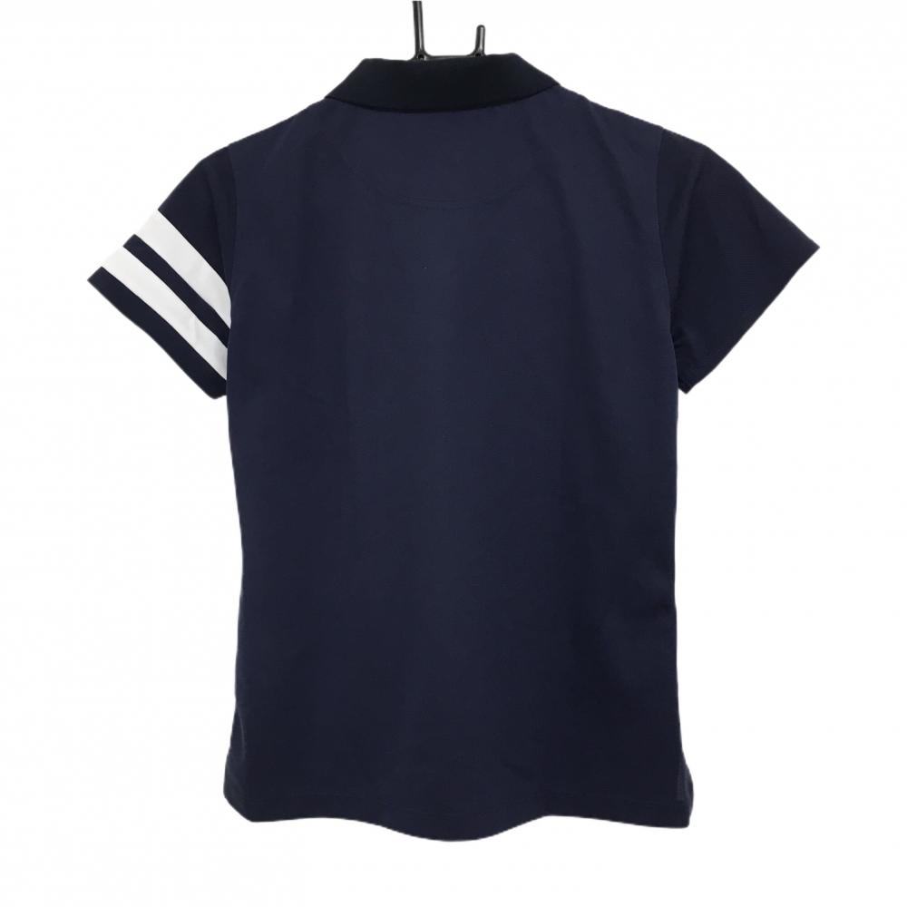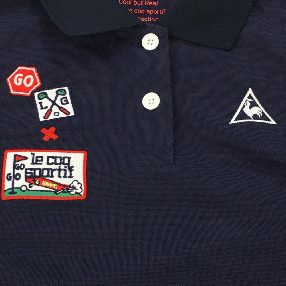 【超美品】ルコック 半袖ポロシャツ ネイビー×白 袖2ライン 複数ワッペン レディース L ゴルフウェア le coq sportif