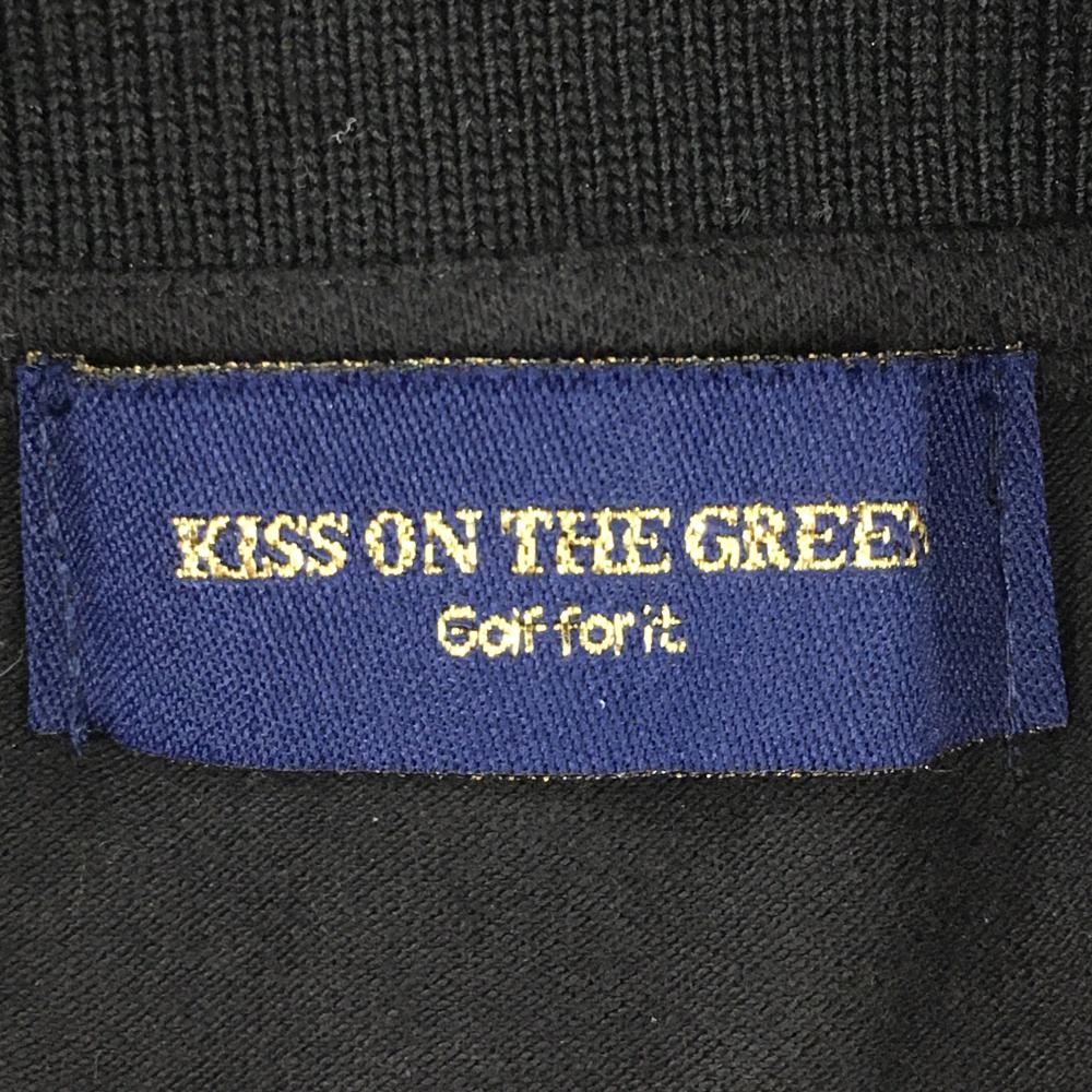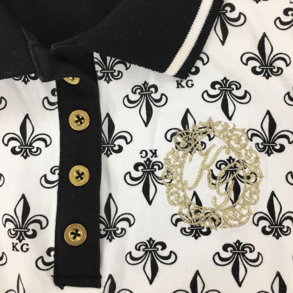 【美品】キスオンザグリーン 半袖ポロシャツ 白×黒 前身頃総柄 レディース 2(M) ゴルフウェア kiss on the green