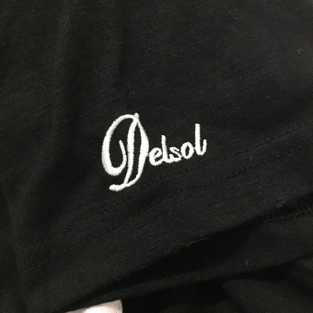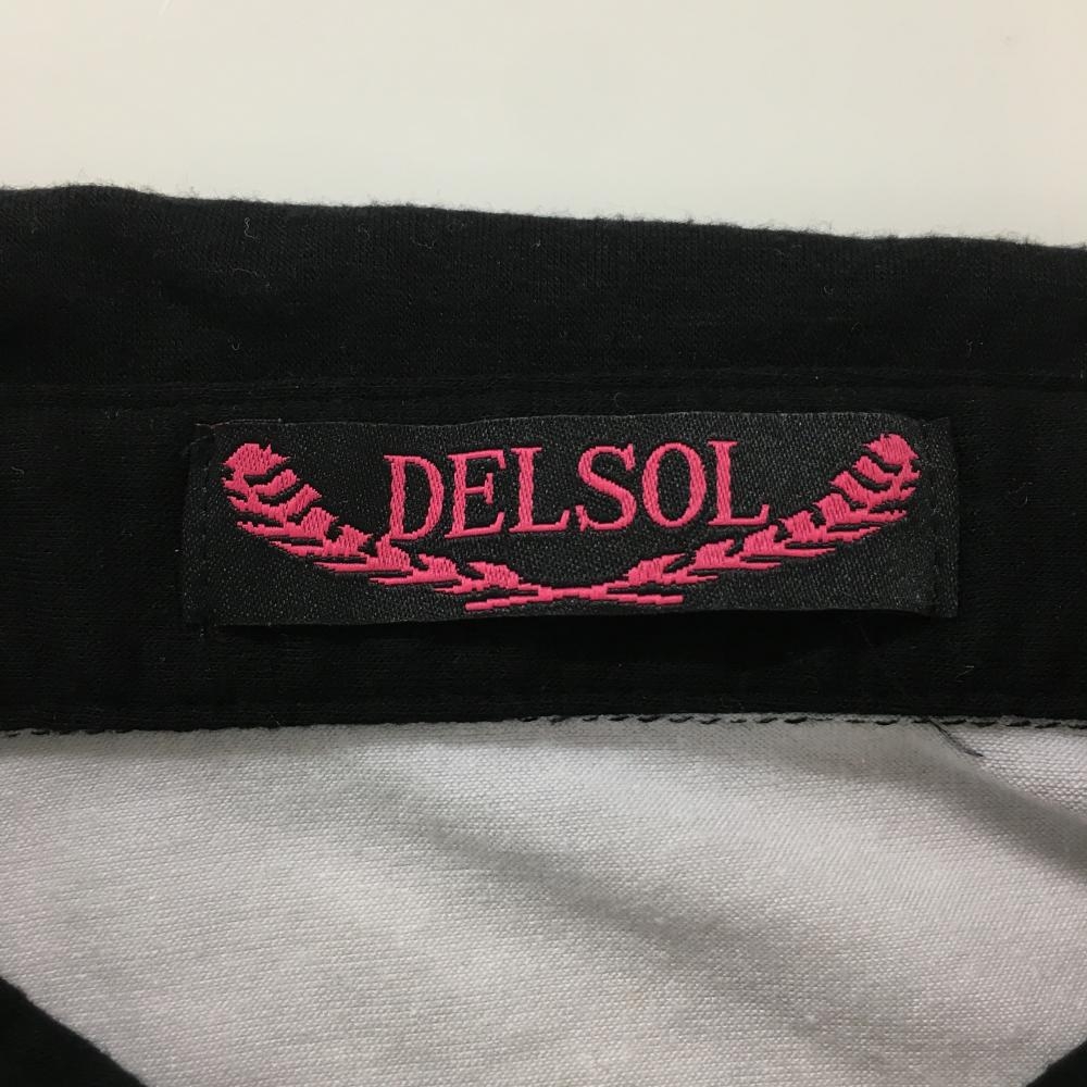 【美品】デルソル 半袖ポロシャツ 黒×白 ロゴ刺しゅう レディース L ゴルフウェア DELSOL