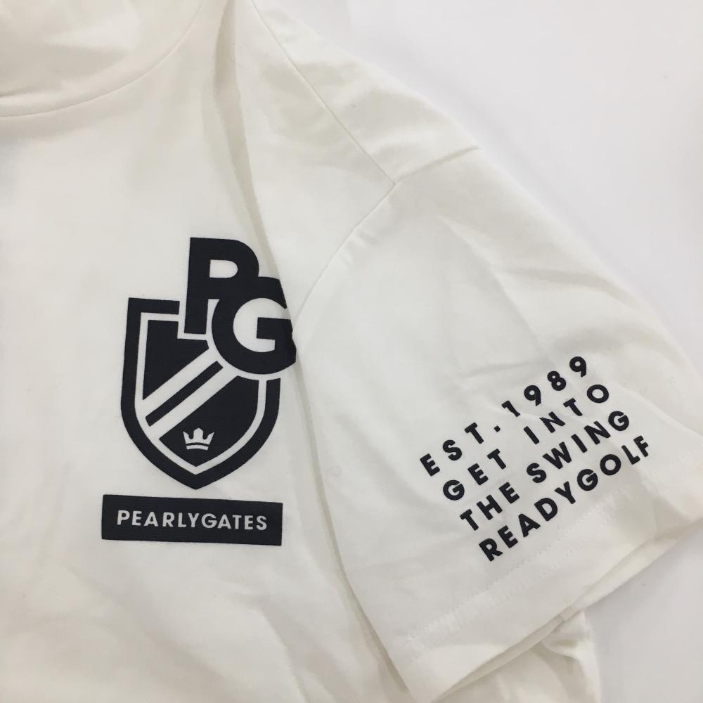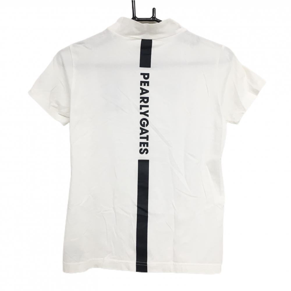 【美品】パーリーゲイツ 半袖ハイネックシャツ 白×ダークネイビー ロゴプリント レディース 0(S) ゴルフウェア PEARLY GATES