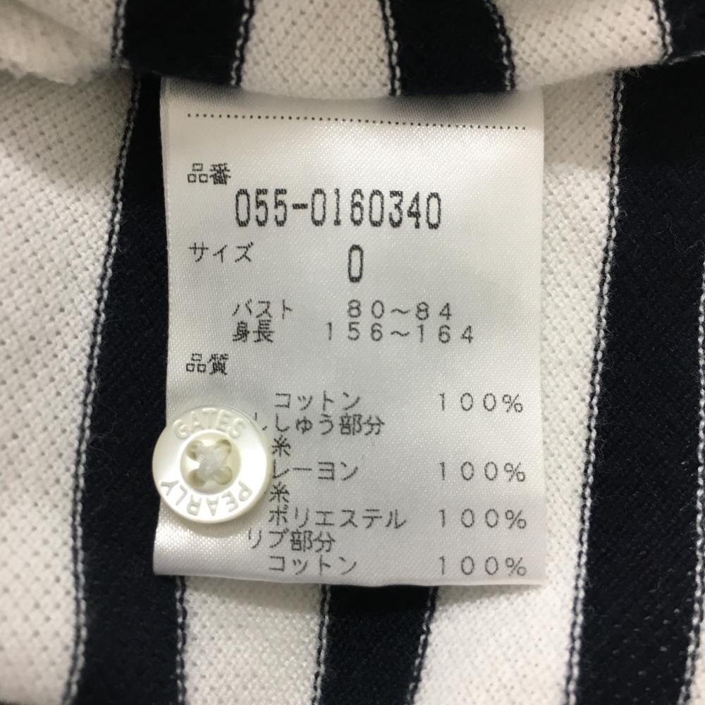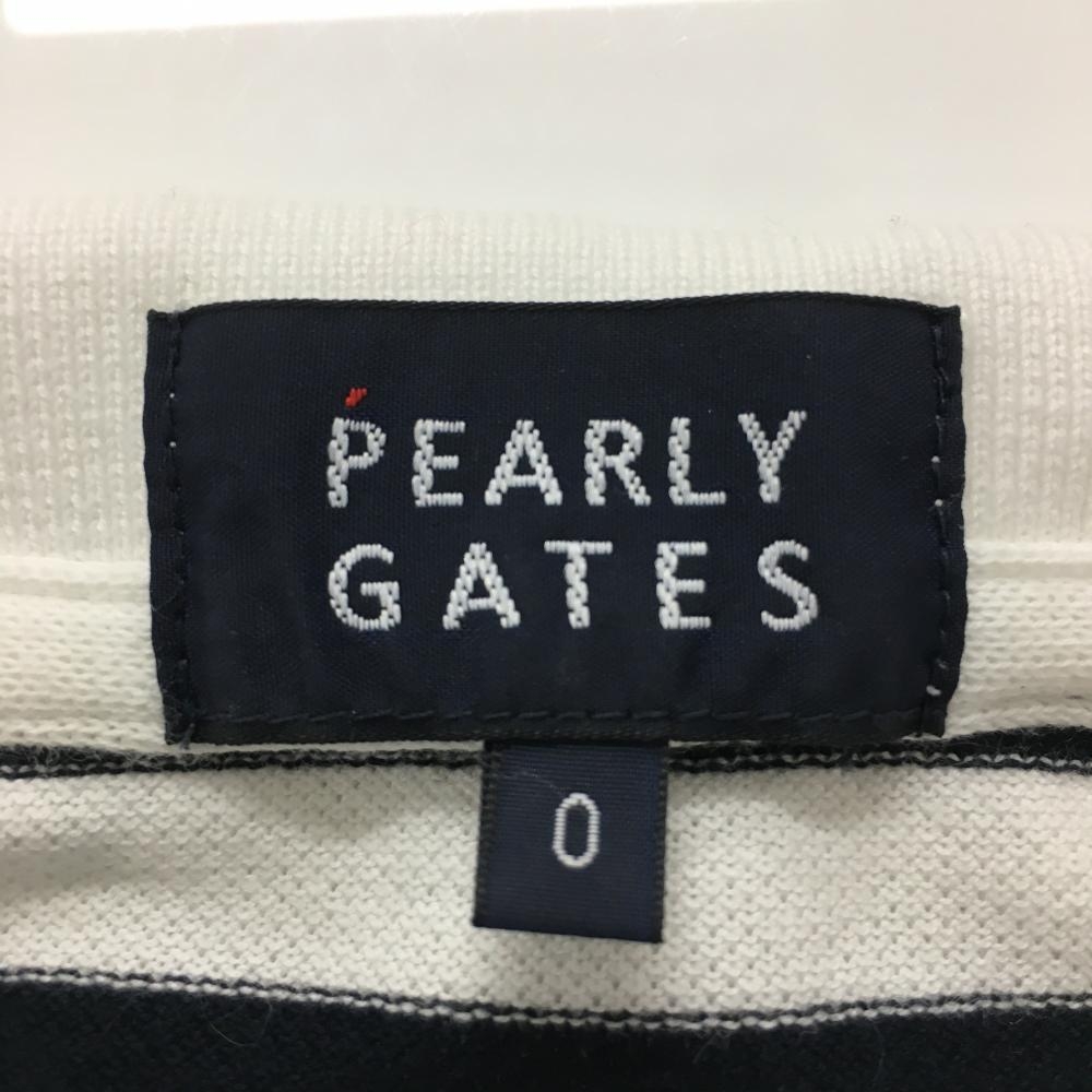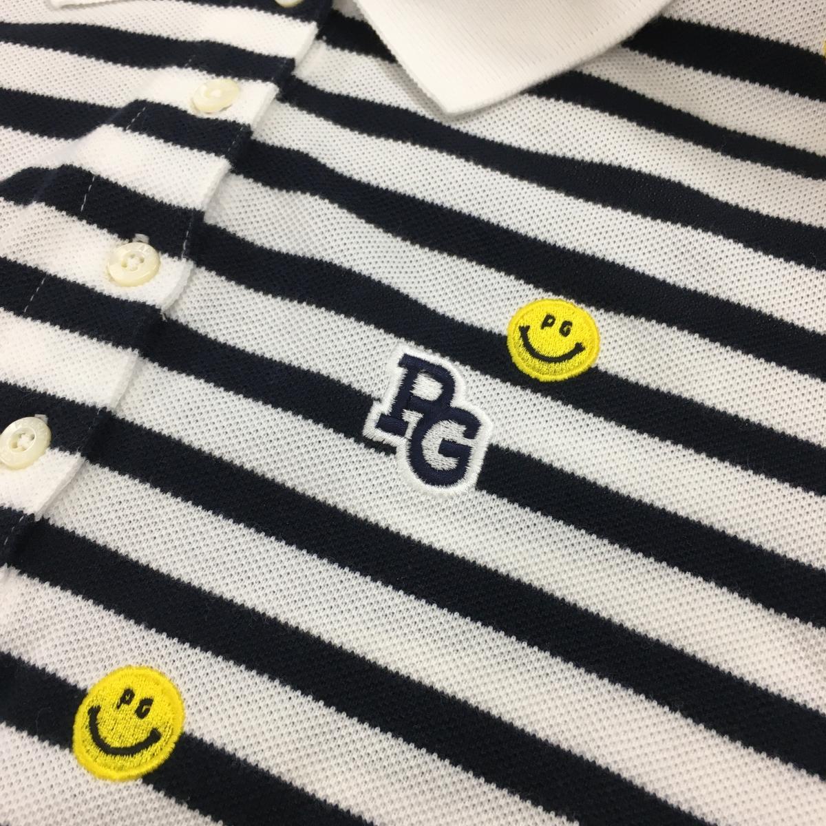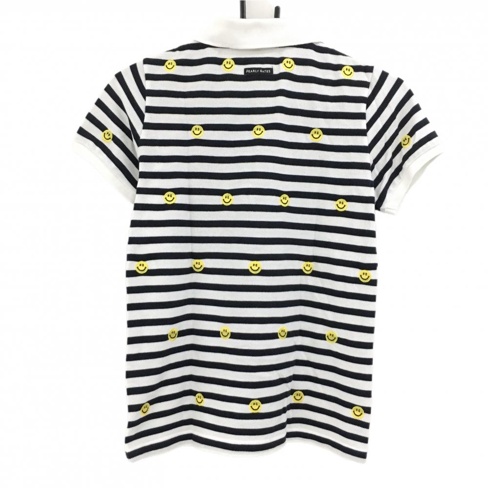【美品】パーリーゲイツ 半袖ポロシャツ 白×ダークネイビー ボーダー ニコちゃん スマイル レディース 0(S) ゴルフウェア PEARLY GATES