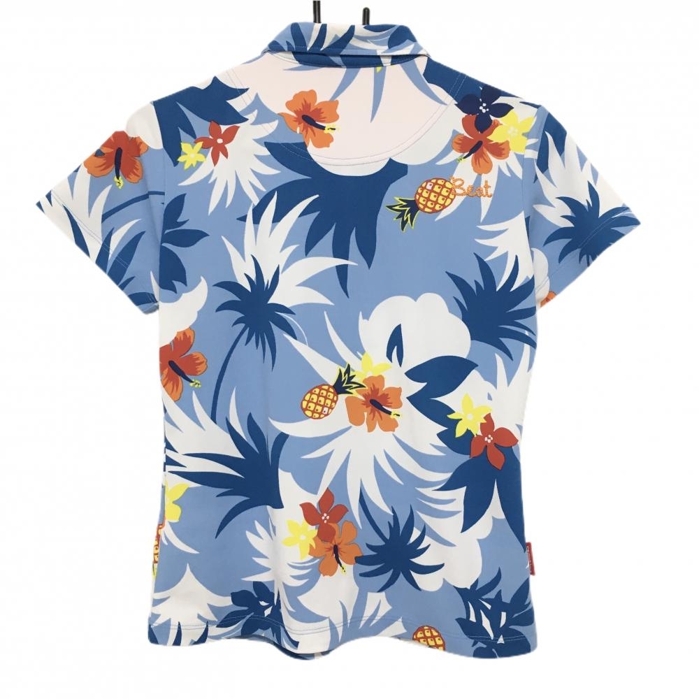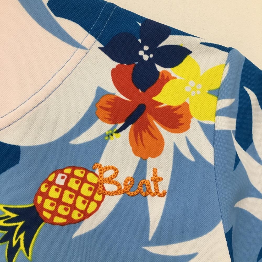 【超美品】ルコック 半袖ポロシャツ ライトブルー×白×ネイビー レディース L ゴルフウェア le coq sportif