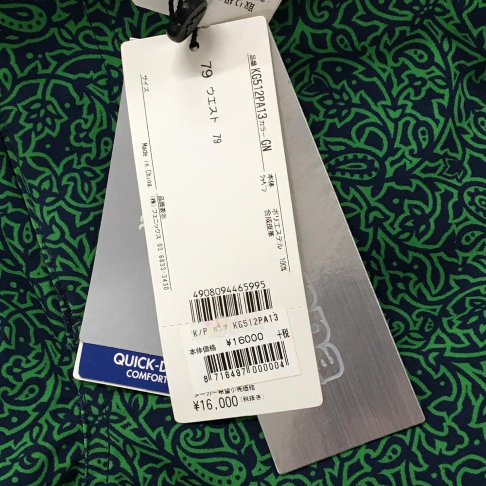 【新品】カッパ パンツ ネイビー×グリーン 総柄 ストレッチ 裾未処理 メンズ 79 ゴルフウェア Kappa