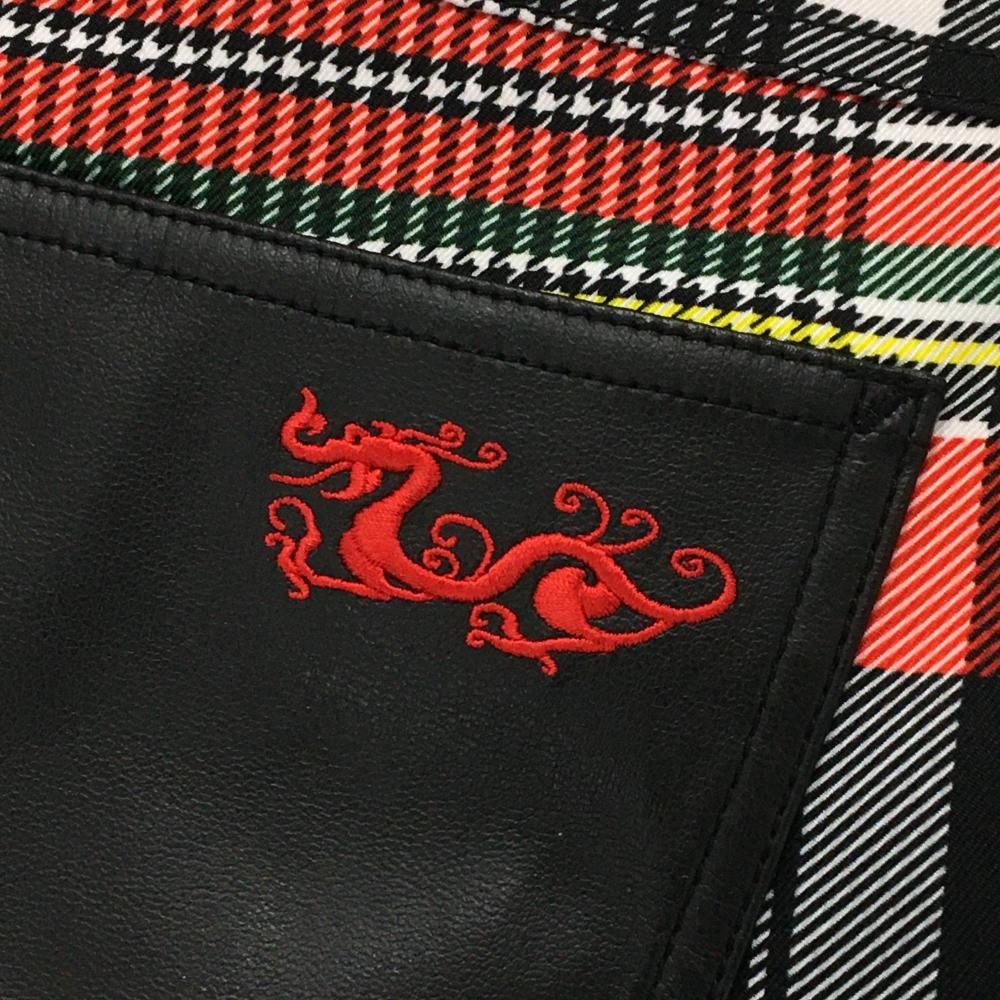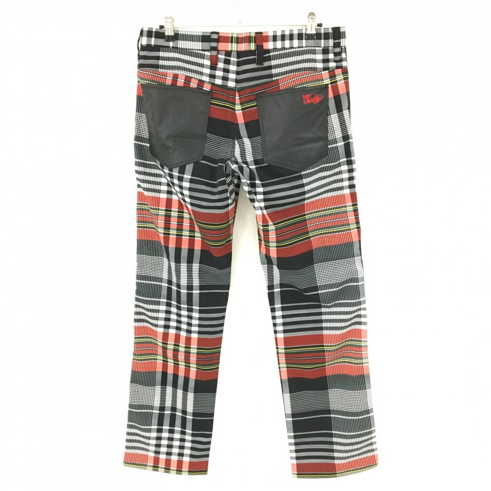 【超美品】ダンスウィズドラゴン パンツ 黒×レッド チェック ストレッチ メンズ 3(L) ゴルフウェア Dance With Dragon