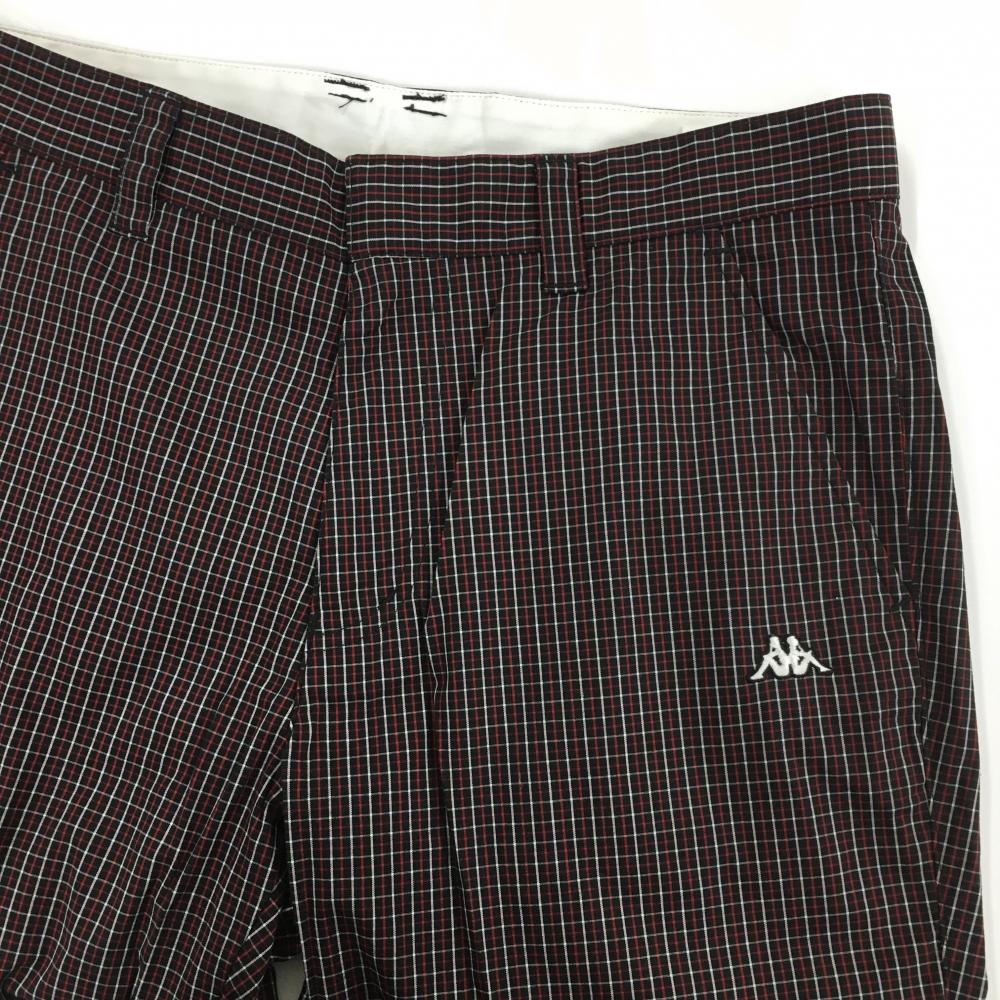 【美品】カッパ パンツ 黒×レッド 格子柄 ロゴ刺しゅう メンズ 82 ゴルフウェア Kappa