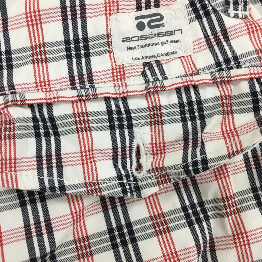 ロサーセン パンツ 白×レッド チェック柄 ロゴ刺しゅう メンズ 82 ゴルフウェア Rosasen