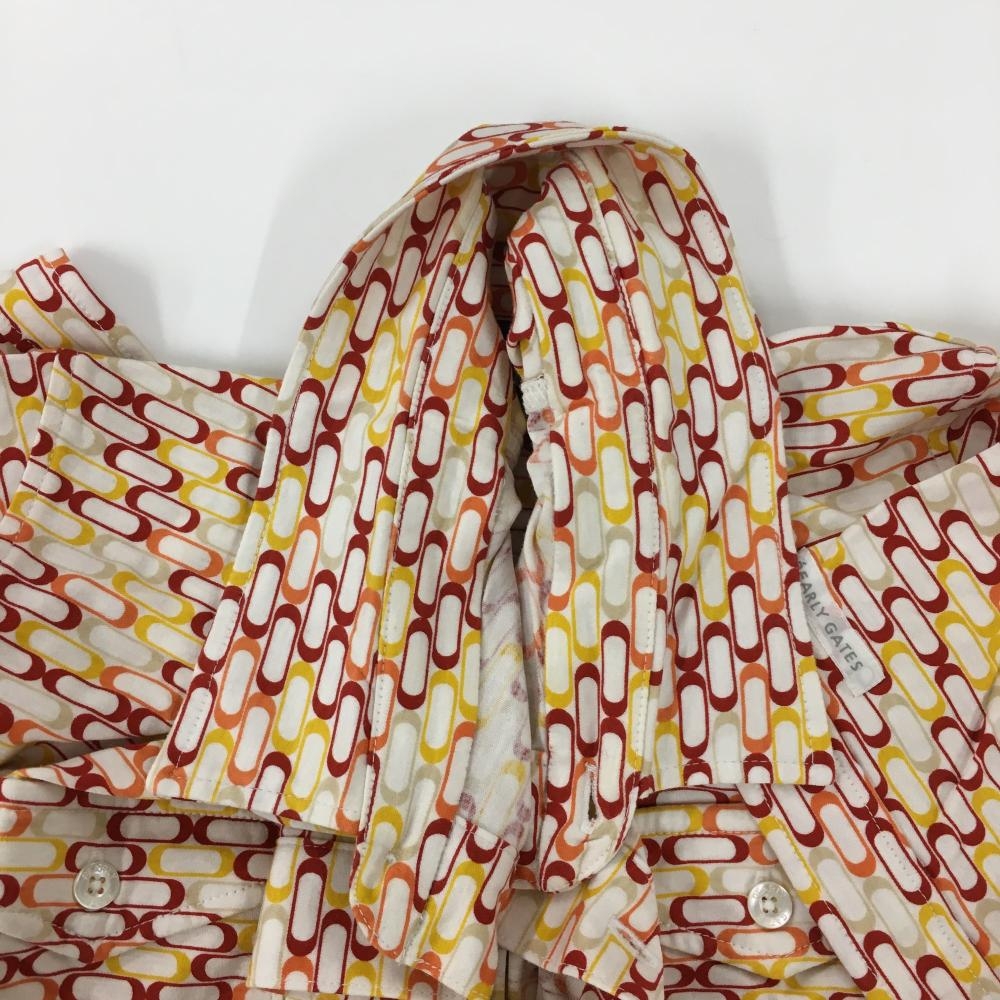 【美品】パーリーゲイツ 半袖ポロシャツ レッド×イエロー 総柄 胸ポケット メンズ 4(M) ゴルフウェア PEARLY GATES