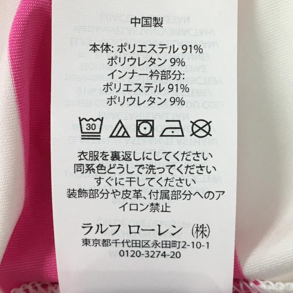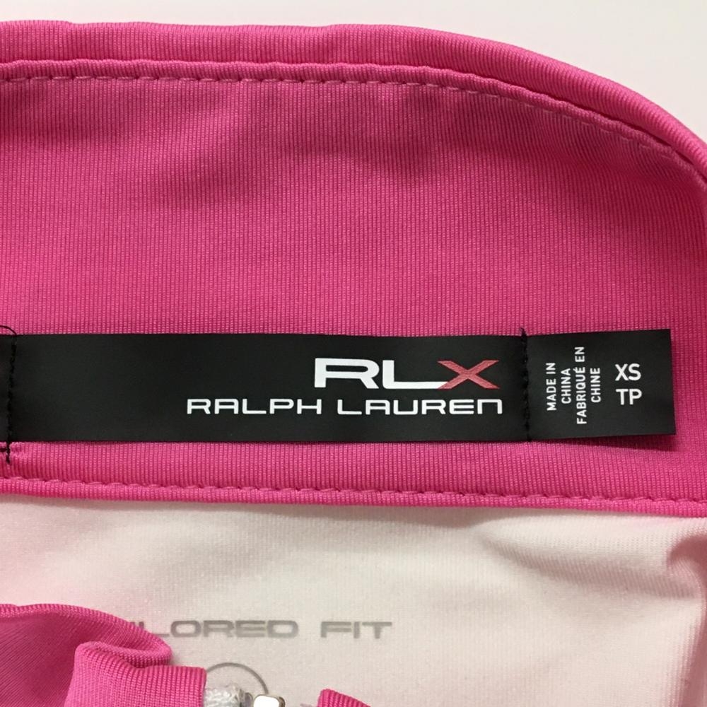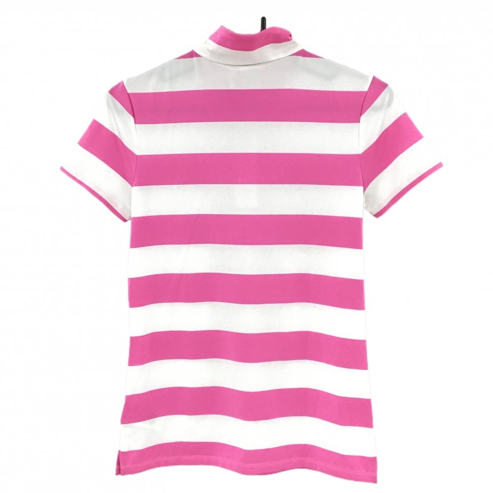 【超美品】RLXラルフローレン 半袖ハイネックシャツ 白×ピンク ボーダー ハーフジップ レディース XS ゴルフウェア Ralph Lauren