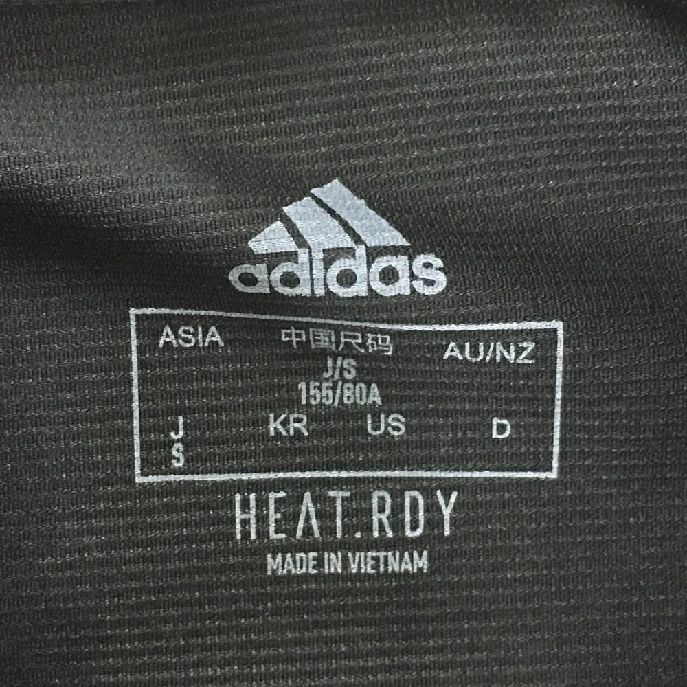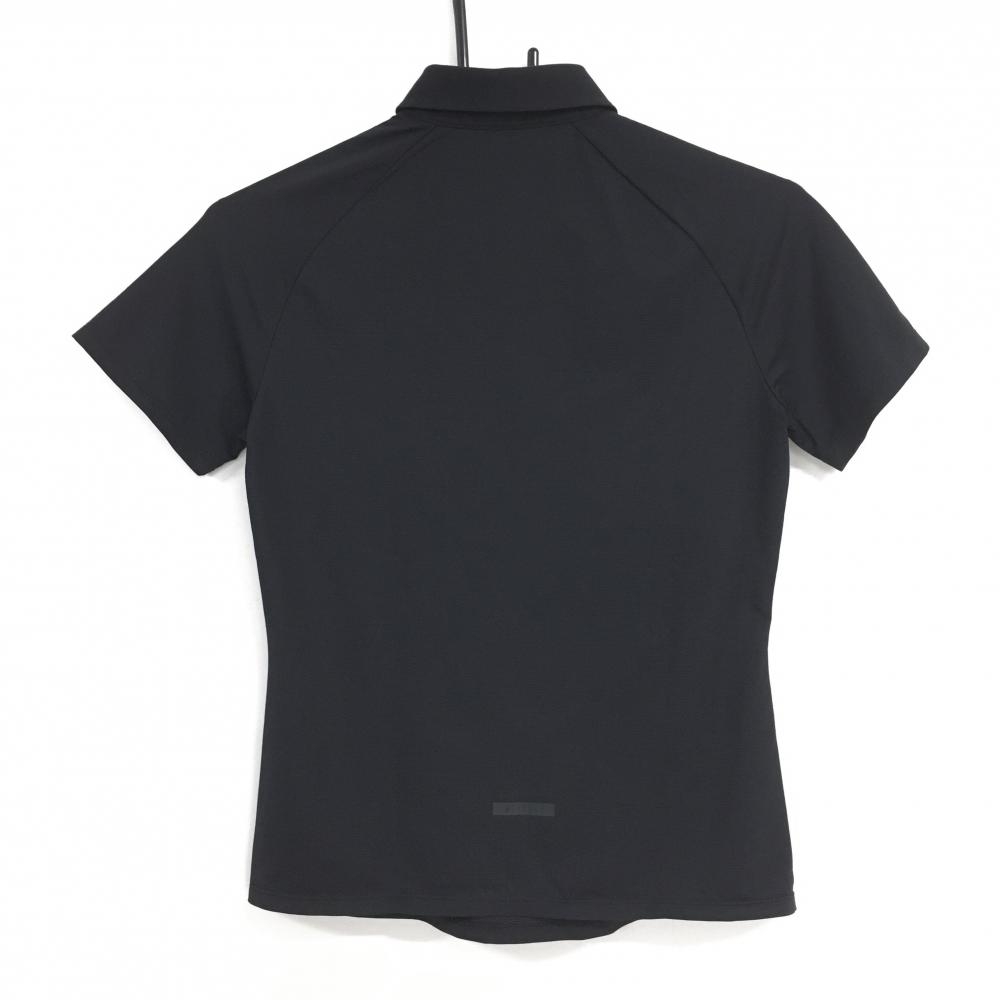 【超美品】アディダス 半袖ポロシャツ 黒 左袖メッシュ3ライン ボタンダウン レディース S ゴルフウェア adidas