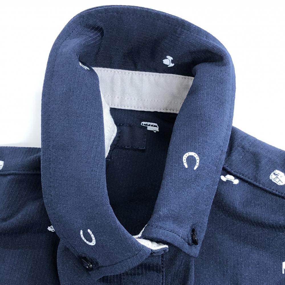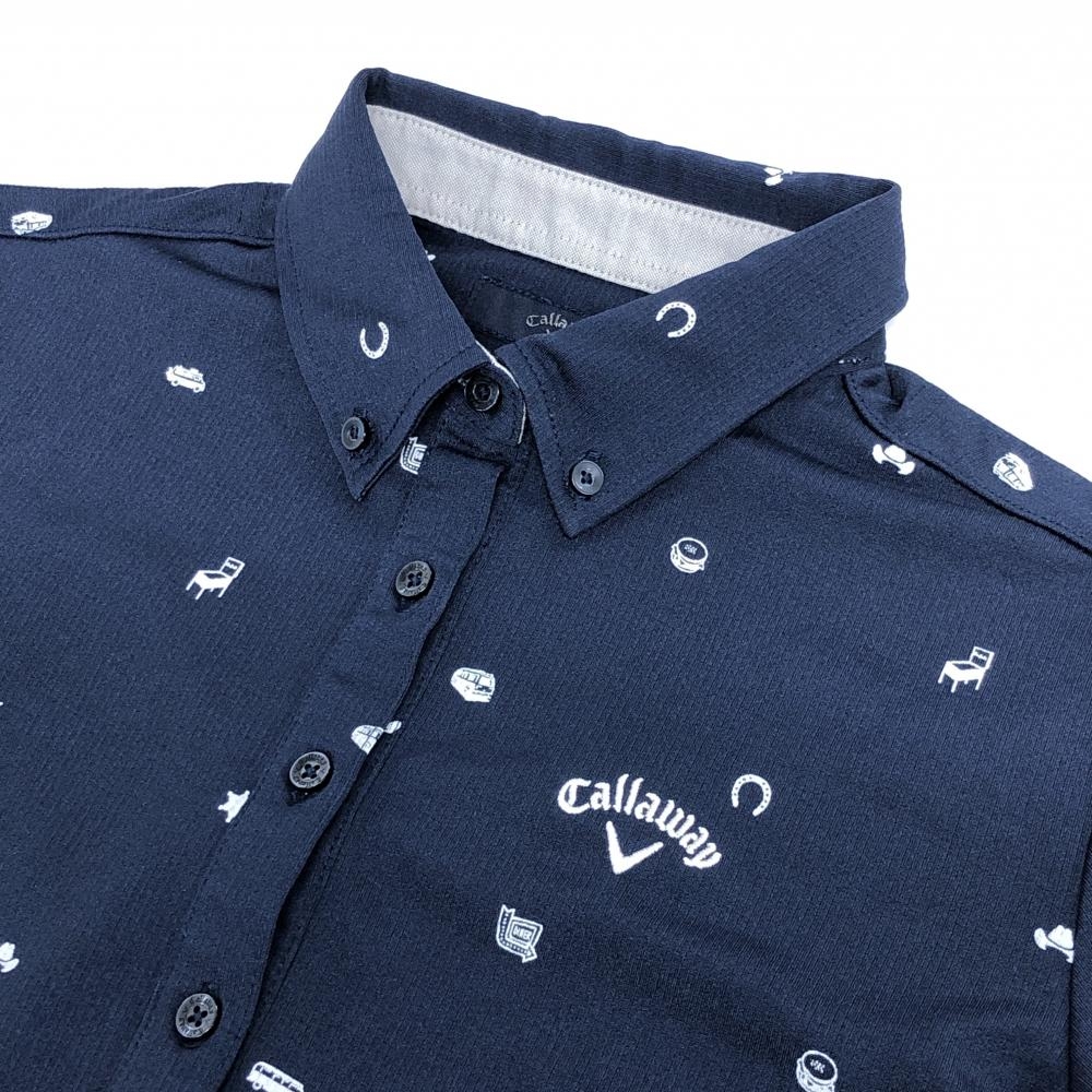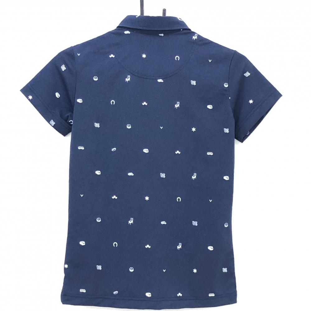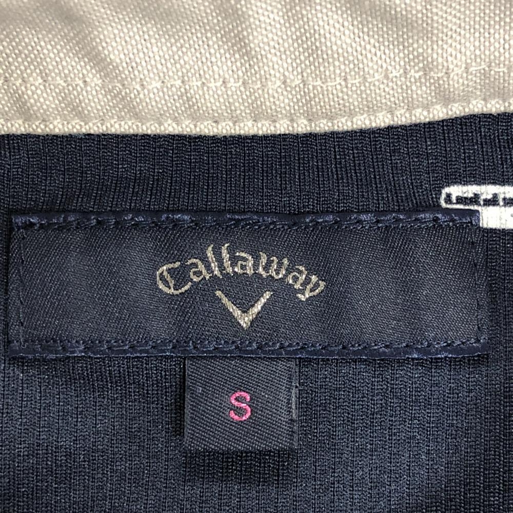 【美品】キャロウェイ 半袖ポロシャツ ネイビー×白 総柄 ロゴ刺しゅう レディース S ゴルフウェア Callaway