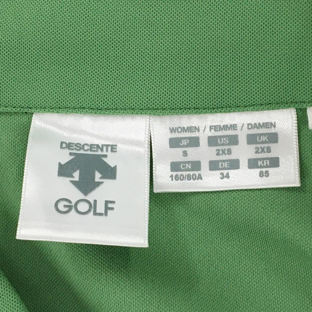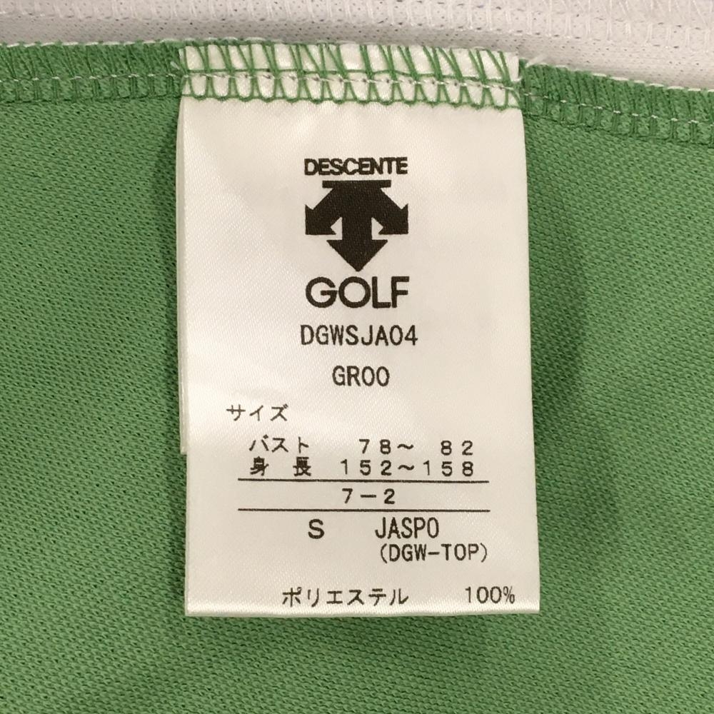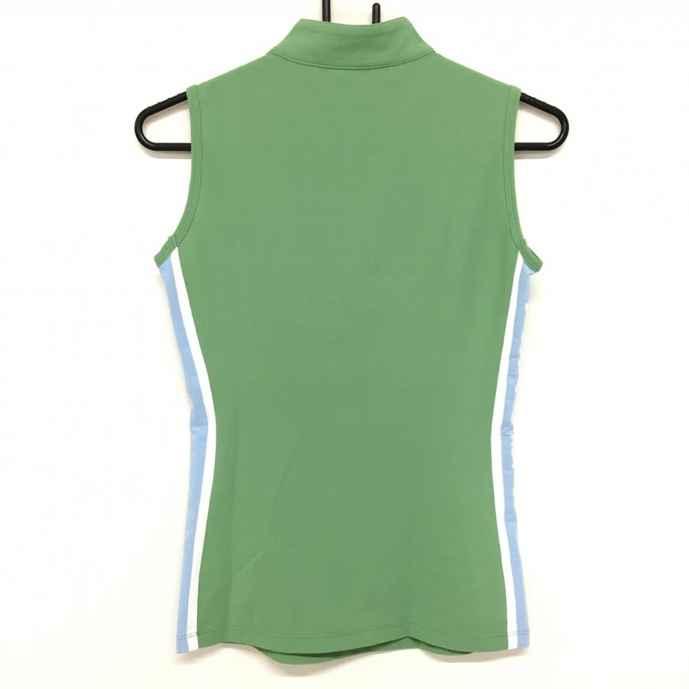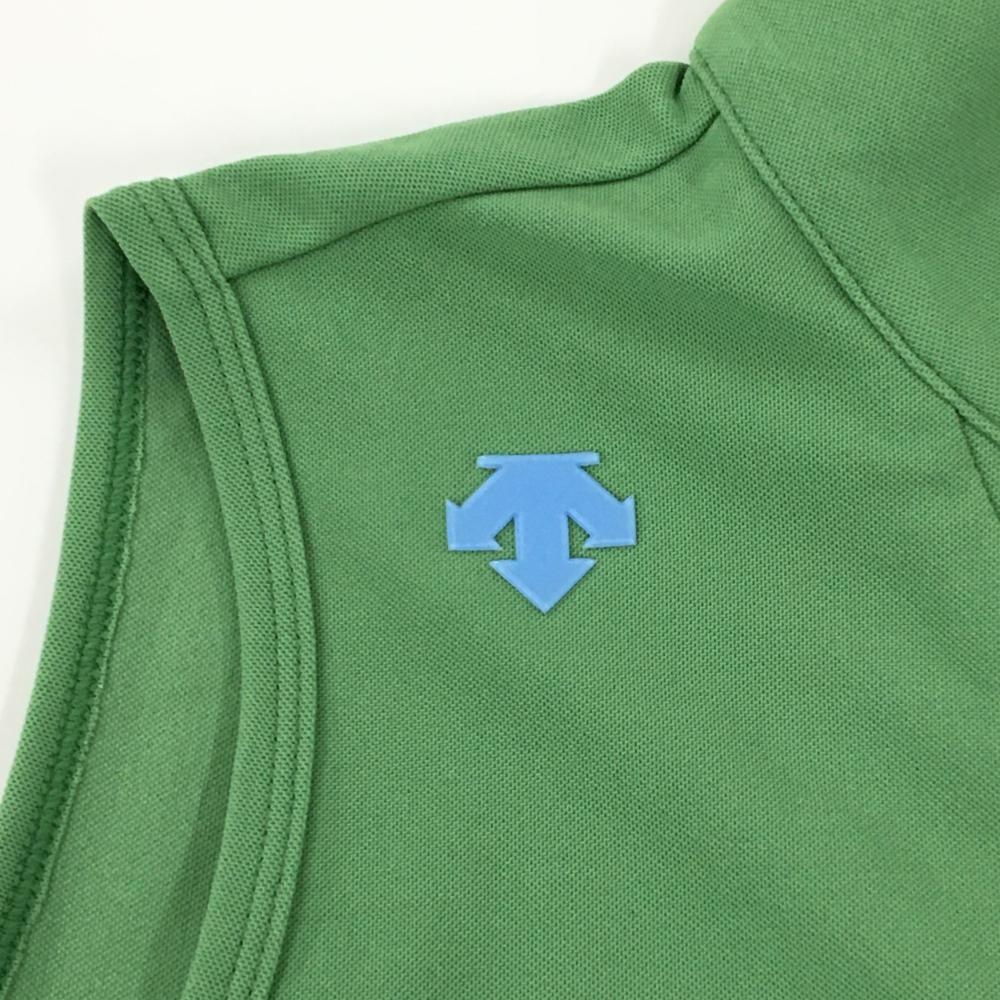 【超美品】デサントゴルフ ノースリーブスキッパーシャツ グリーン×ライトブルー 肩ロゴ レディース S ゴルフウェア DESCENTE