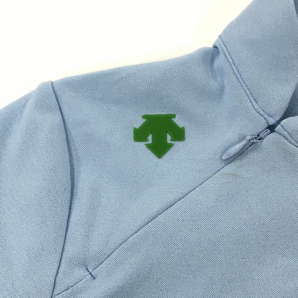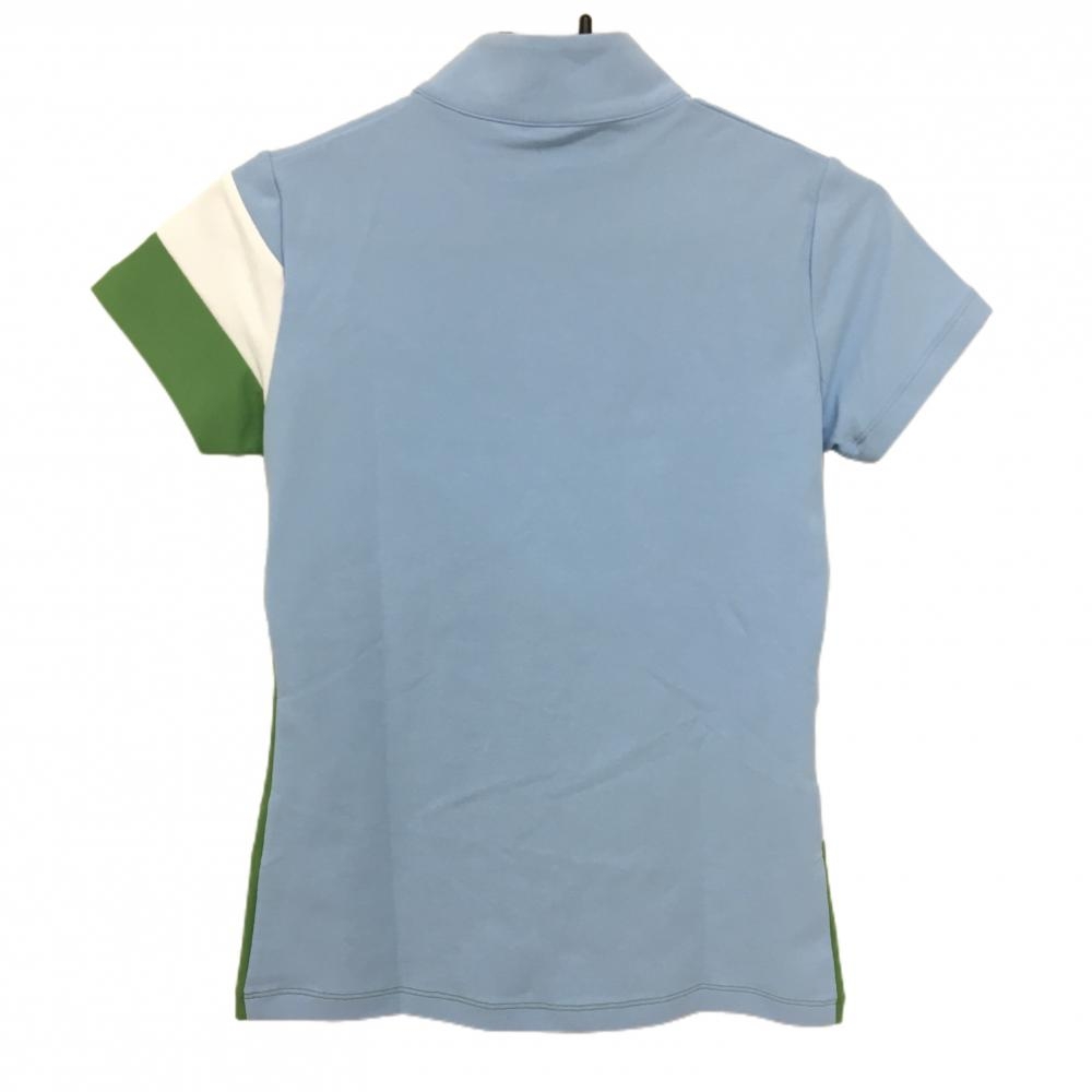 デサントゴルフ 半袖ハイネックシャツ ライトブルー×グリーン 肩ファスナー 中田英寿 レディース S ゴルフウェア DESCENTE