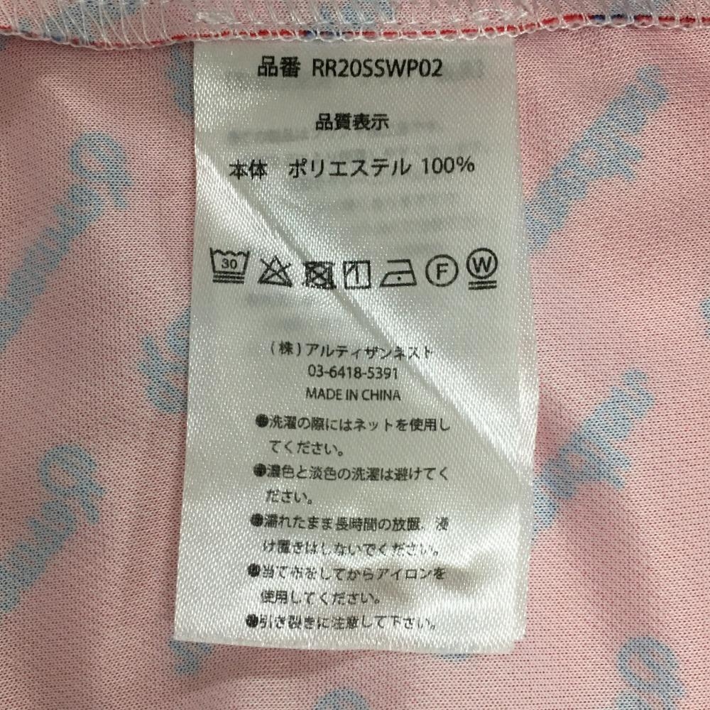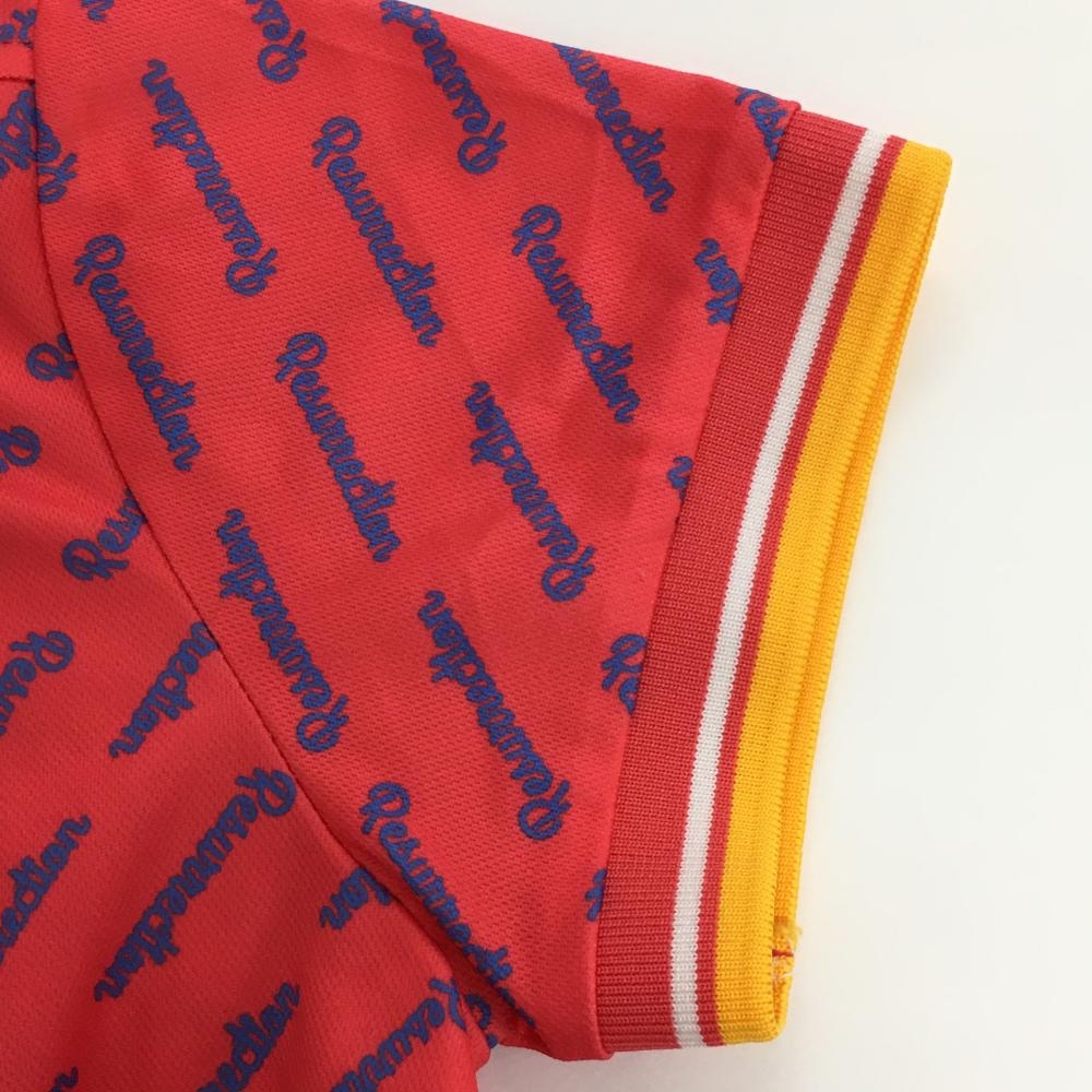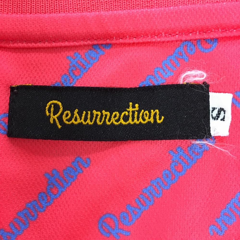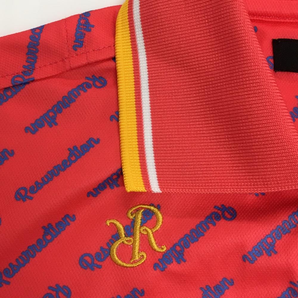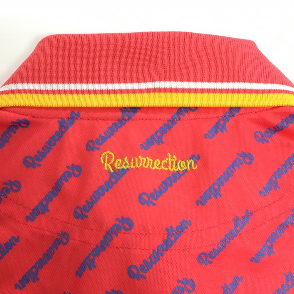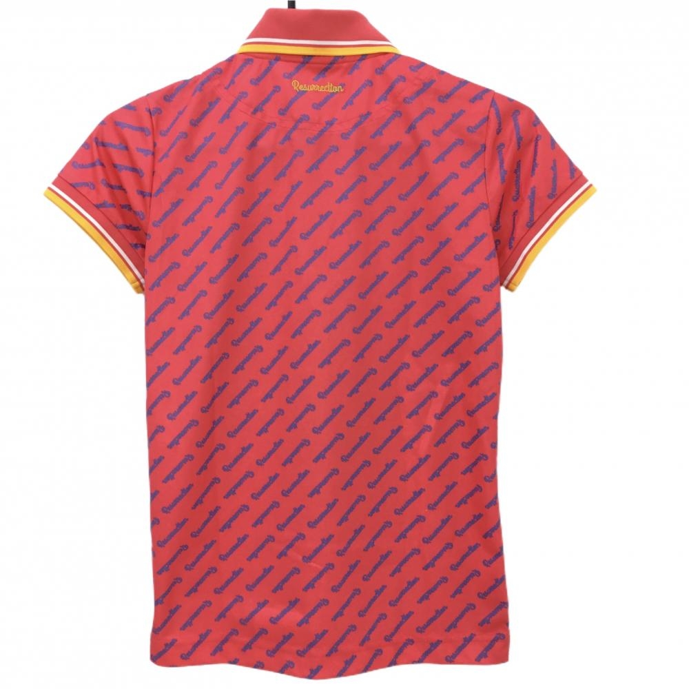 【超美品】レザレクション 半袖ポロシャツ レッド系×ブルー 斜めロゴ総柄 ロゴ刺しゅう レディース S ゴルフウェア Resurrection