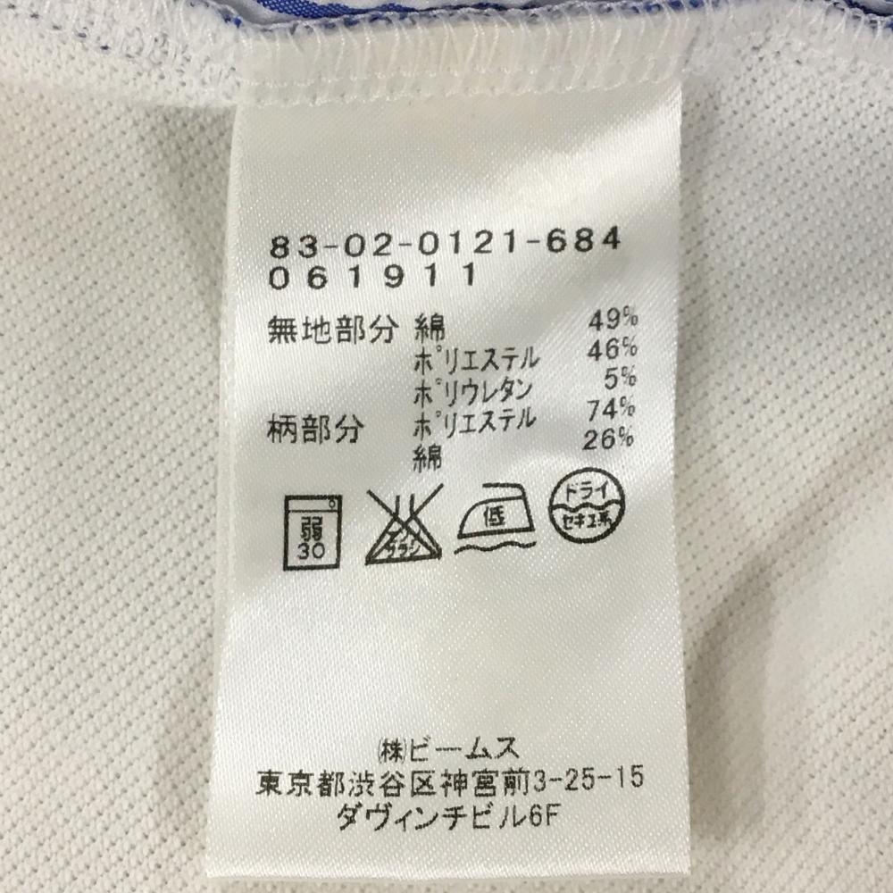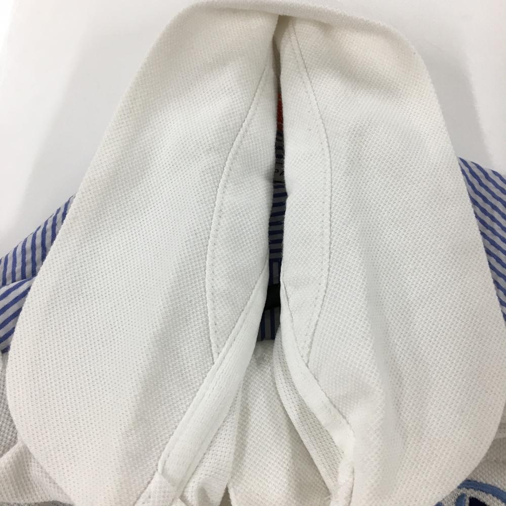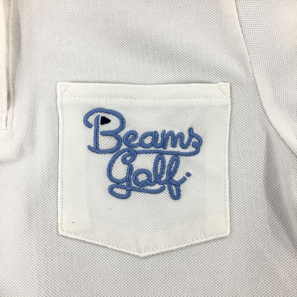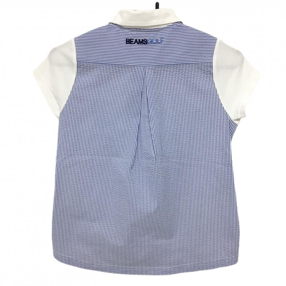 【美品】ビームスゴルフ 半袖ポロシャツ 白×ブルー 背面ストライプ サッカー生地 レディース S ゴルフウェア BEAMS GOLF