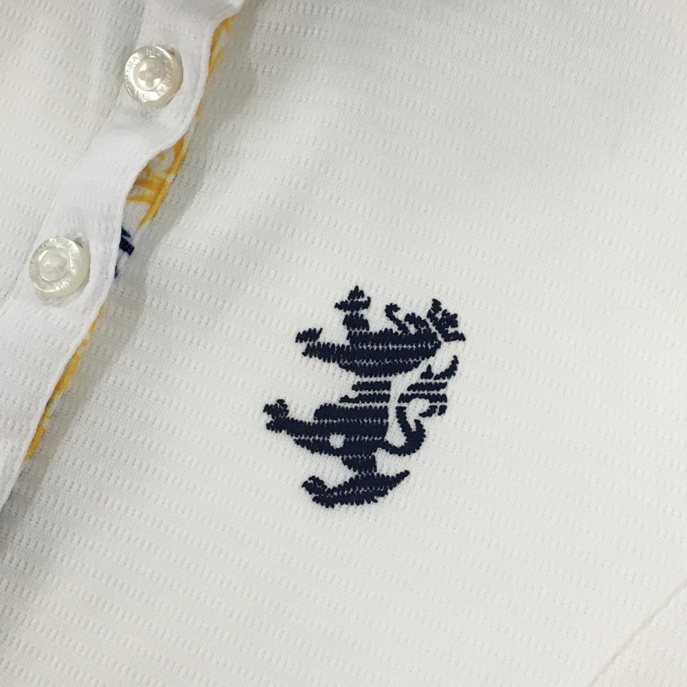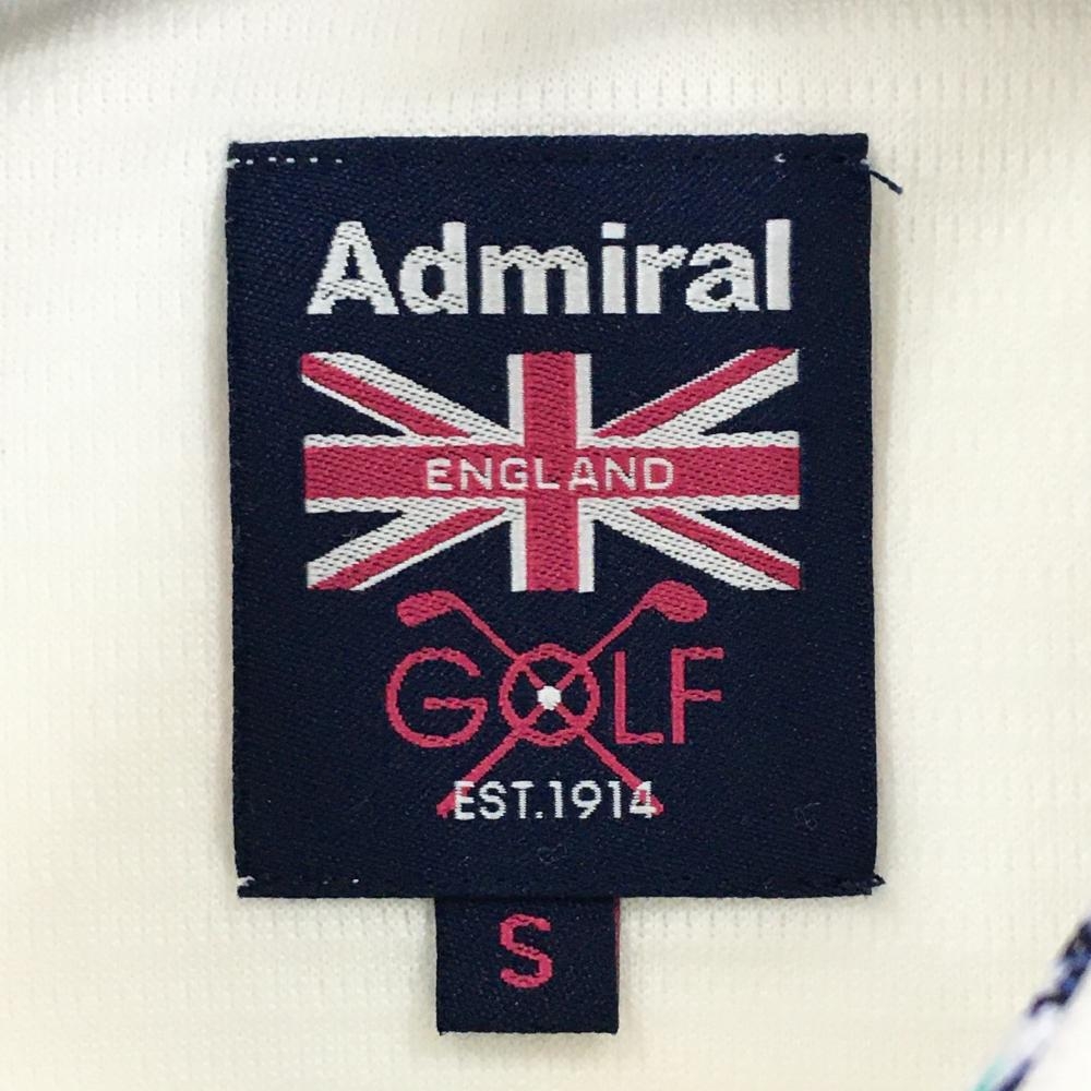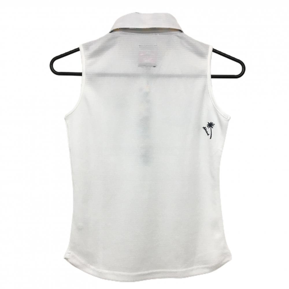 【超美品】アドミラル ノースリーブポロシャツ 白×ネイビー 一部ヤシの木柄 レディース S ゴルフウェア Admiral